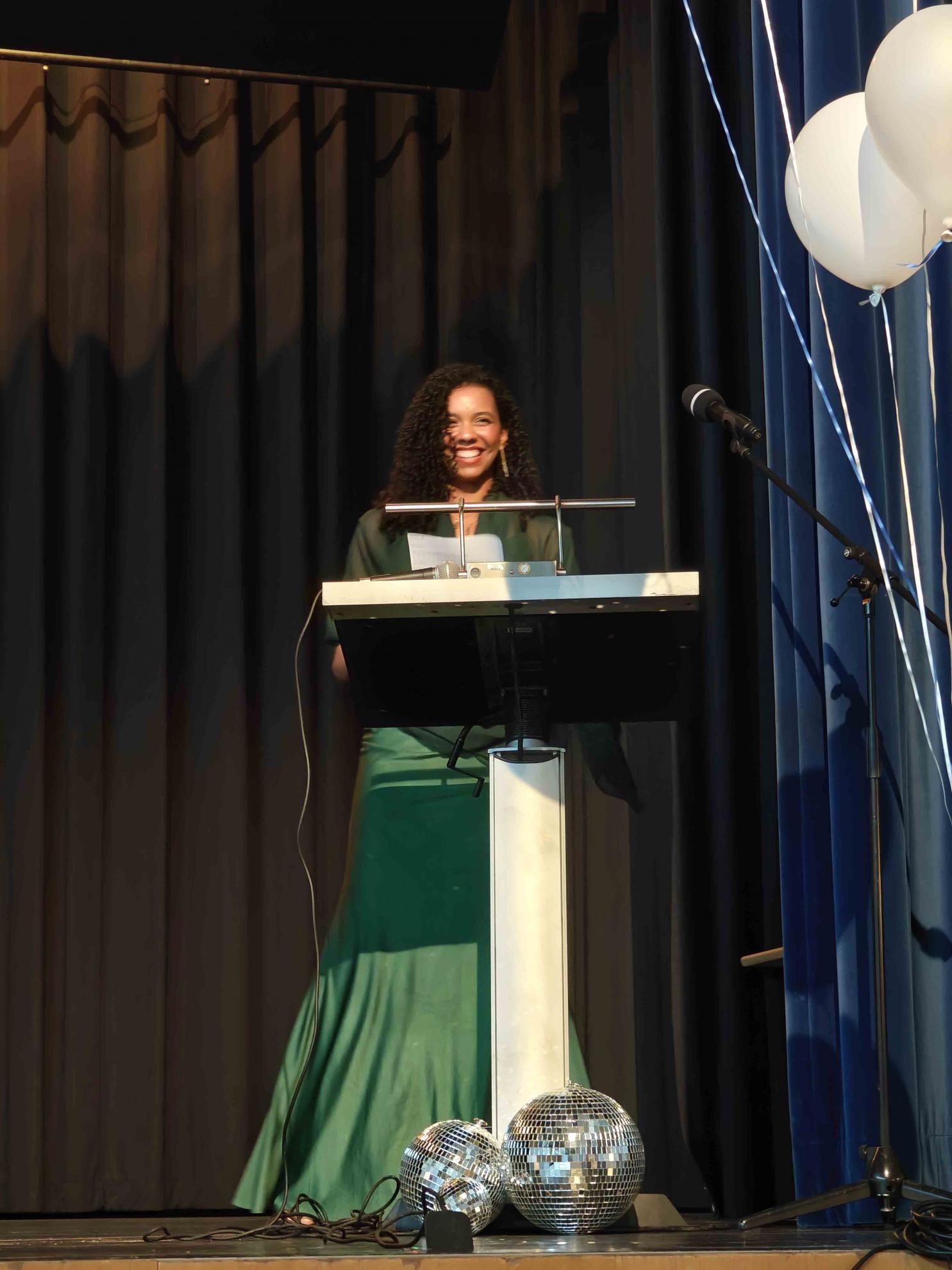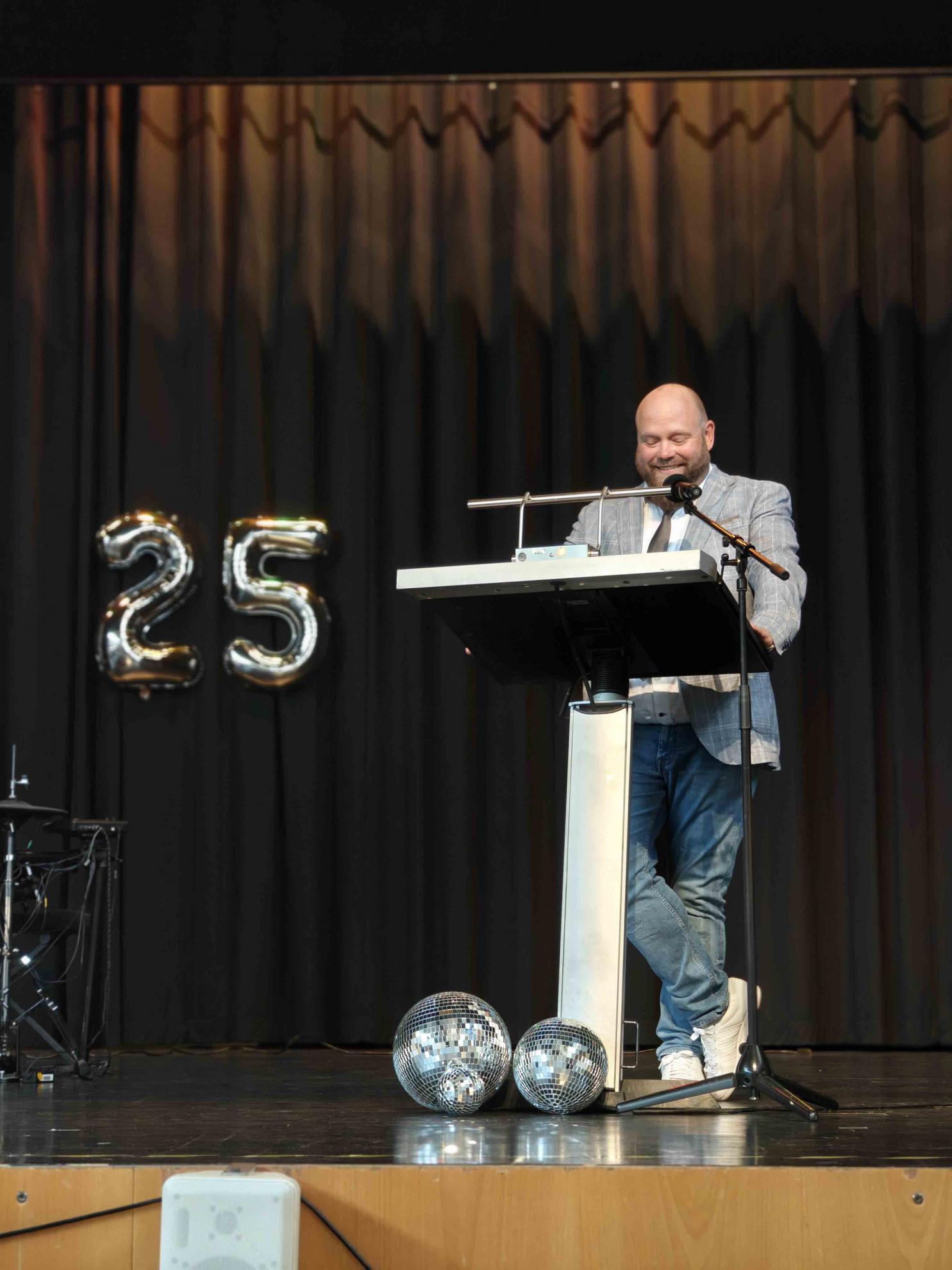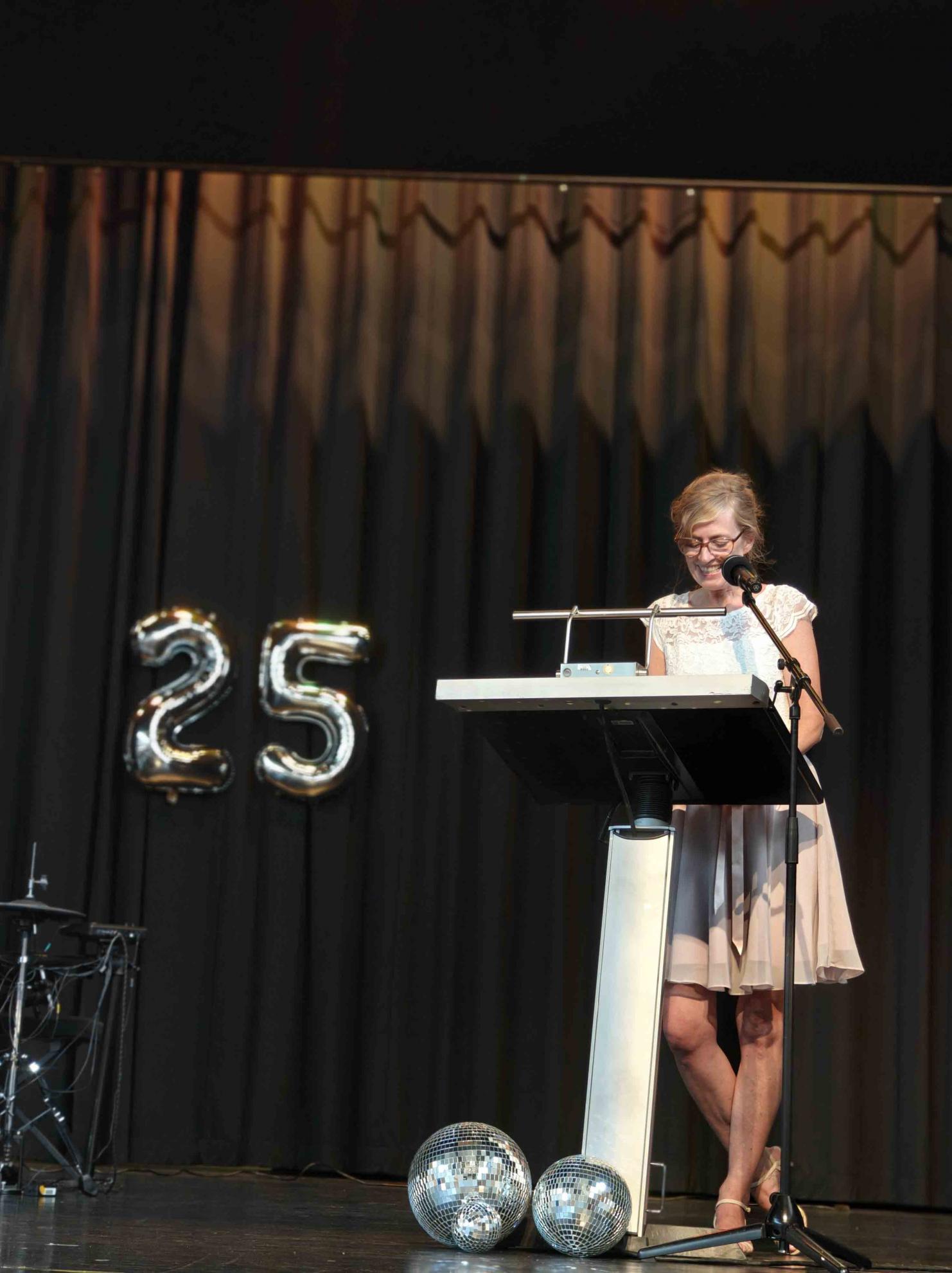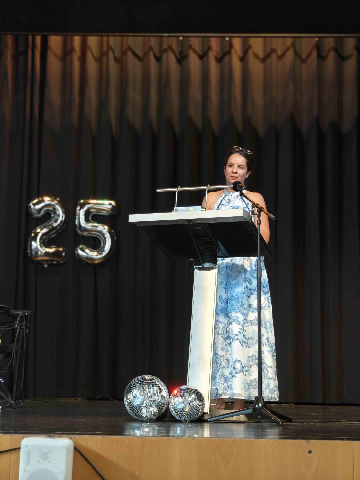 Vor der Zeugnisausgabe richteten die Profilfach- und Fachlehrkräfte persönliche Worte an ihre Schützlinge und überreichten stolz die Zeugnisse sowie zahlreiche Preise. Auch Celine Schneider wandte sich in ihrer Rolle als Vertreterin der SMV mit warmen Worten an die Abiturient:innen und bedankte sich insbesondere bei unseren Sekretärinnen, den „Mensaheldinnen“ sowie unserem Hausmeister. Elternvertreter Exner lobte außerdem die stillen Helden im Hintergrund: die Eltern, die quasi „auch mit Abi gemacht“ hätten.