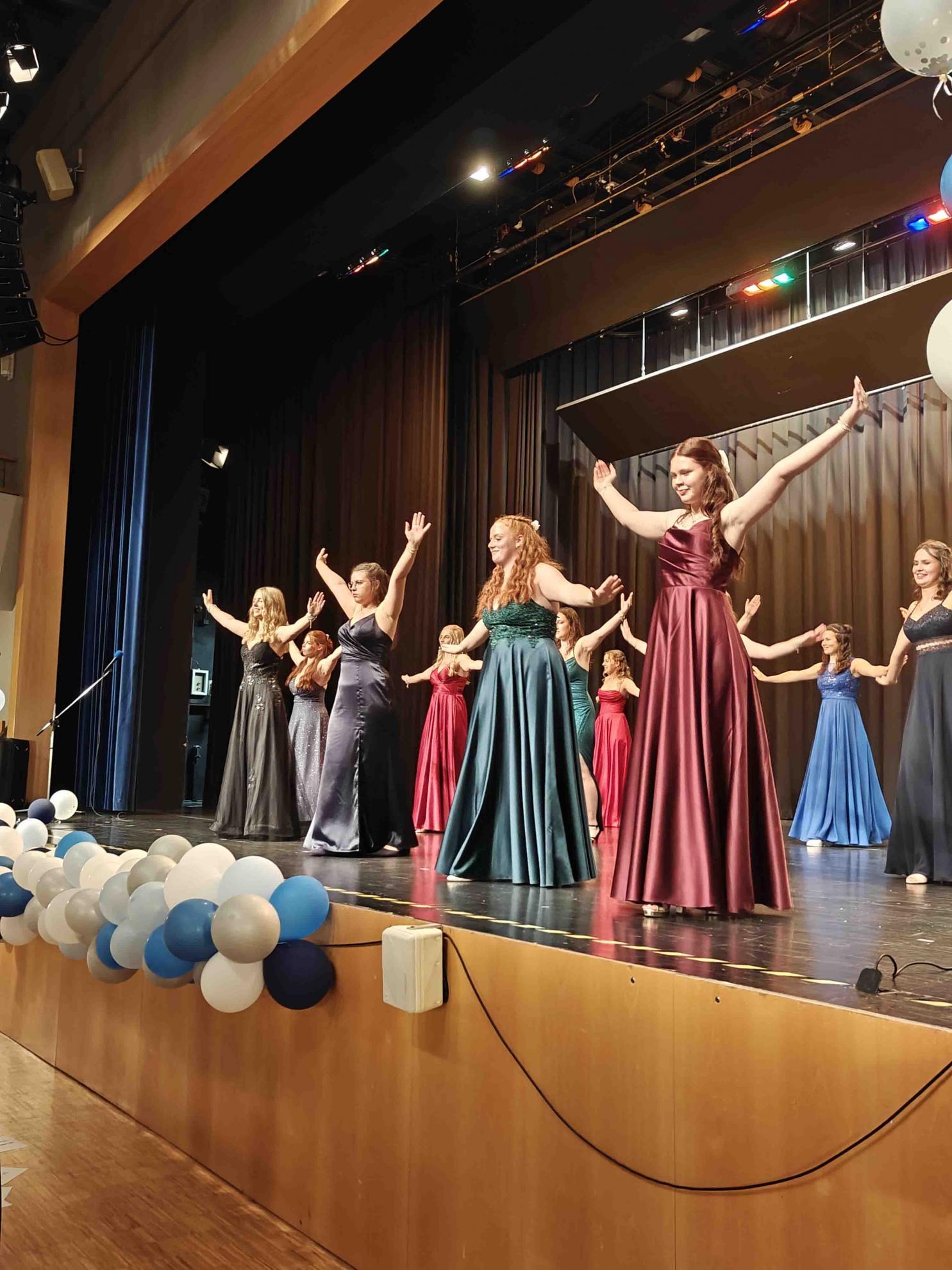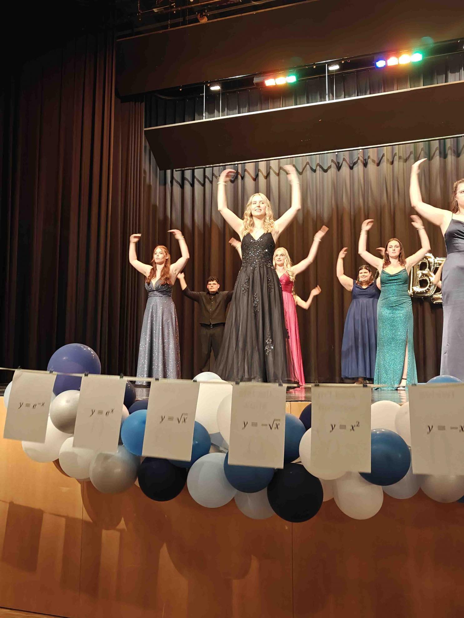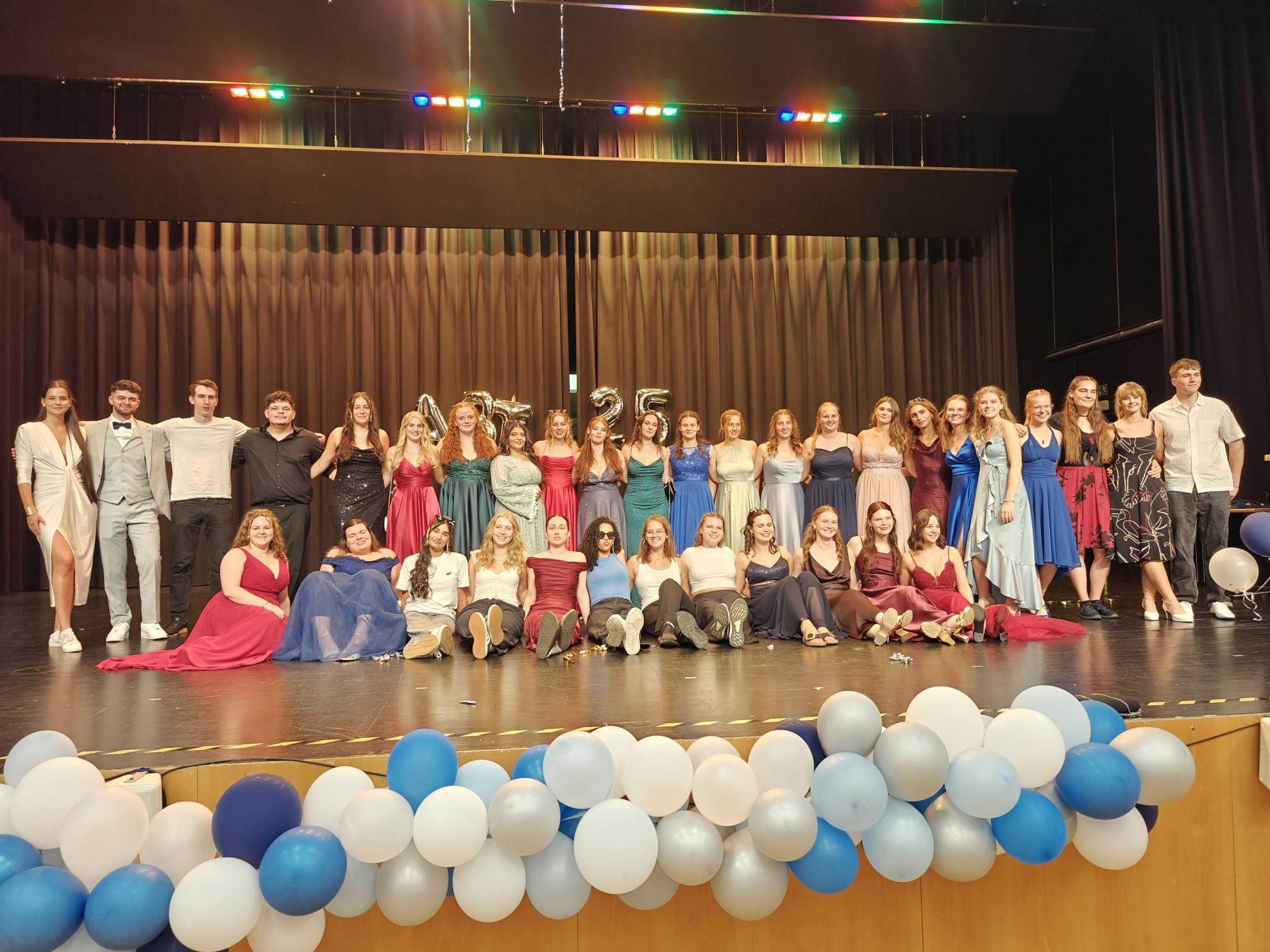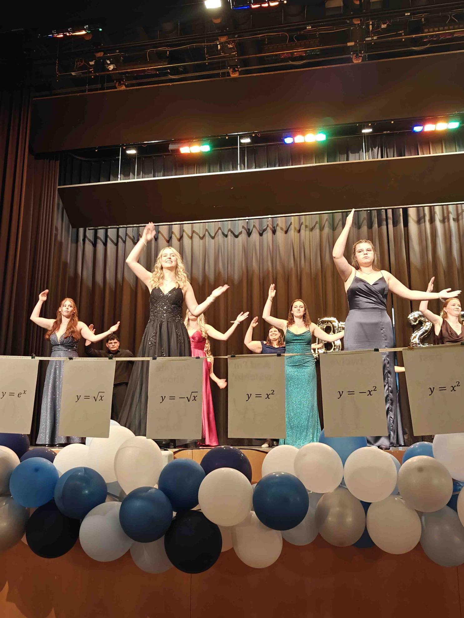 Für einen krönenden Abschluss sorgten zwei Tänze, welche die Absolvent:innen einstudiert hatten. Der fünfstündige Mathekurs unter der Leitung von Frau Filian überraschte mit einer originellen Choreografie: Die Schüler:innen stellten mit ihren Armen verschiedene Funktionsgraphen dar – von der linearen Funktion bis zur Sinuskurve –, was bei Publikum und (Mathe-)Lehrkräften gleichermaßen für Begeisterung sorgte.