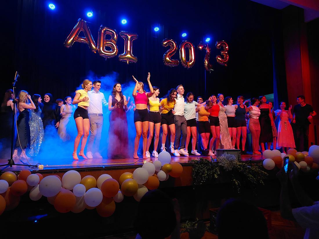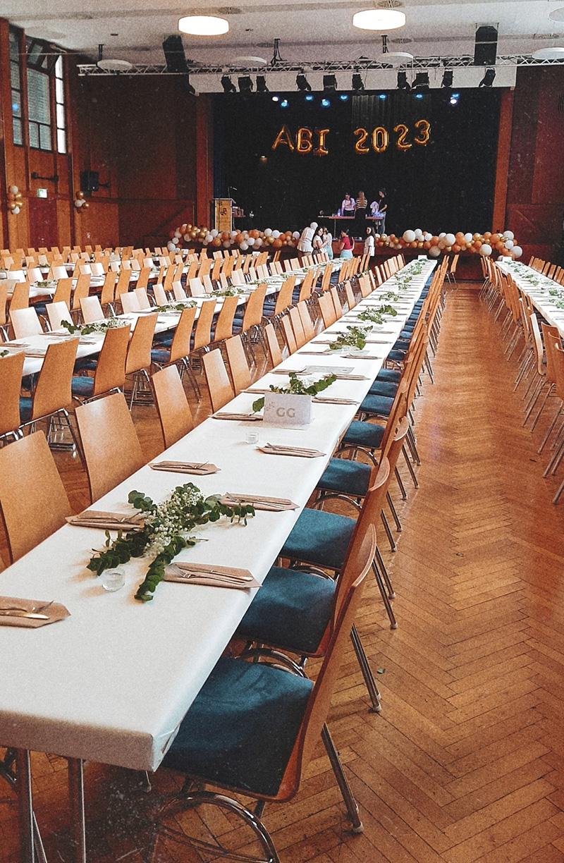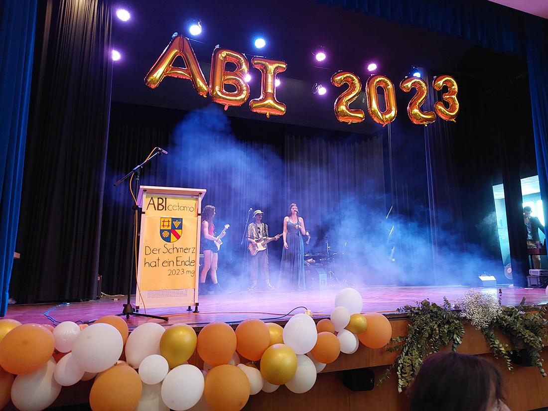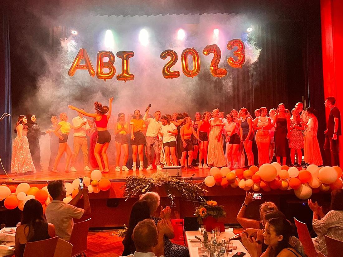Mit einem abschließenden Stück der Schulband ging der offizielle Teil der Abifeier zu Ende und die Abiturient:innen und ihre Gäste ließen den Abend bei einem gemeinsamen Abendessen, diversen Beiträgen der Klassen wie Videopräsentationen, Bierkrugheben und Tänzen ausklingen.