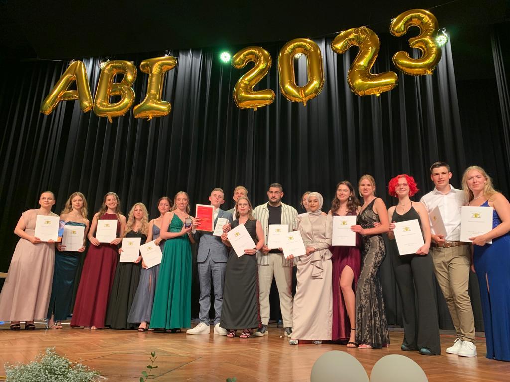 Reich beschenkt wurden im Übrigen unsere Abiturient:innen, denn es konnten zahlreiche Preise vergeben werden: Den Preis des Landrats für die beste Gesamtleistung erhielt Mariella Indira Pfeifer mit einem Gesamtschnitt von 1,0. Marielle nahm zudem den Preis für Pädagogik/Psychologie von der Heidehof-Stiftung, den Preis für Mathematik sowie den Fachpreis für Biologie entgegen.