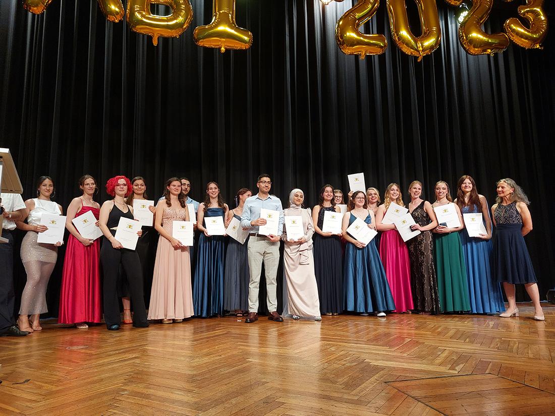 Die vier Abschlussklassen des Beruflichen Gymnasiums mit den Profilen „Gesundheit und Biologie“, „Biotechnologie“ sowie zwei Klassen des Profils „Pädagogik und Psychologie“ haben ihren Abschluss geschafft und am vergangenen Freitag, den 14.07.2023 ihre Abiturzeugnisse erhalten.
