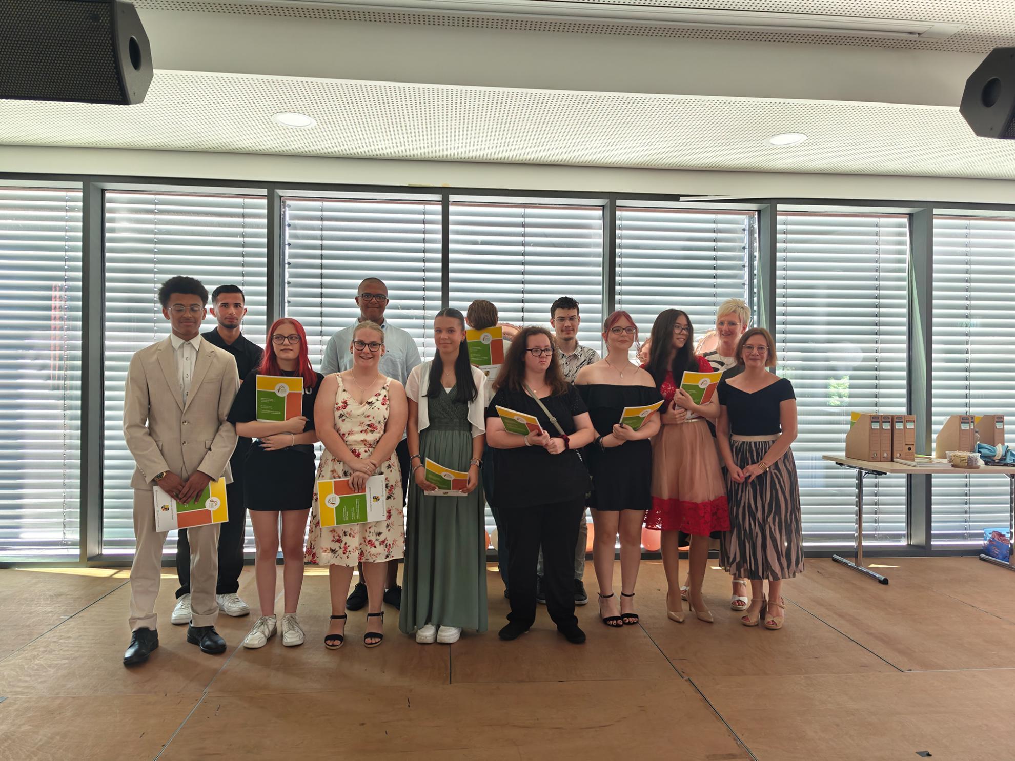 Am Freitag, den 19.07.2024, erhielten die 30 Schüler:innen der Schularten Arbeitsvorbereitung (AV) und des Vorbereitungsjahrs auf Arbeit und Beruf (VABO und VAB-KF) ihre Abschlusszeugnisse.