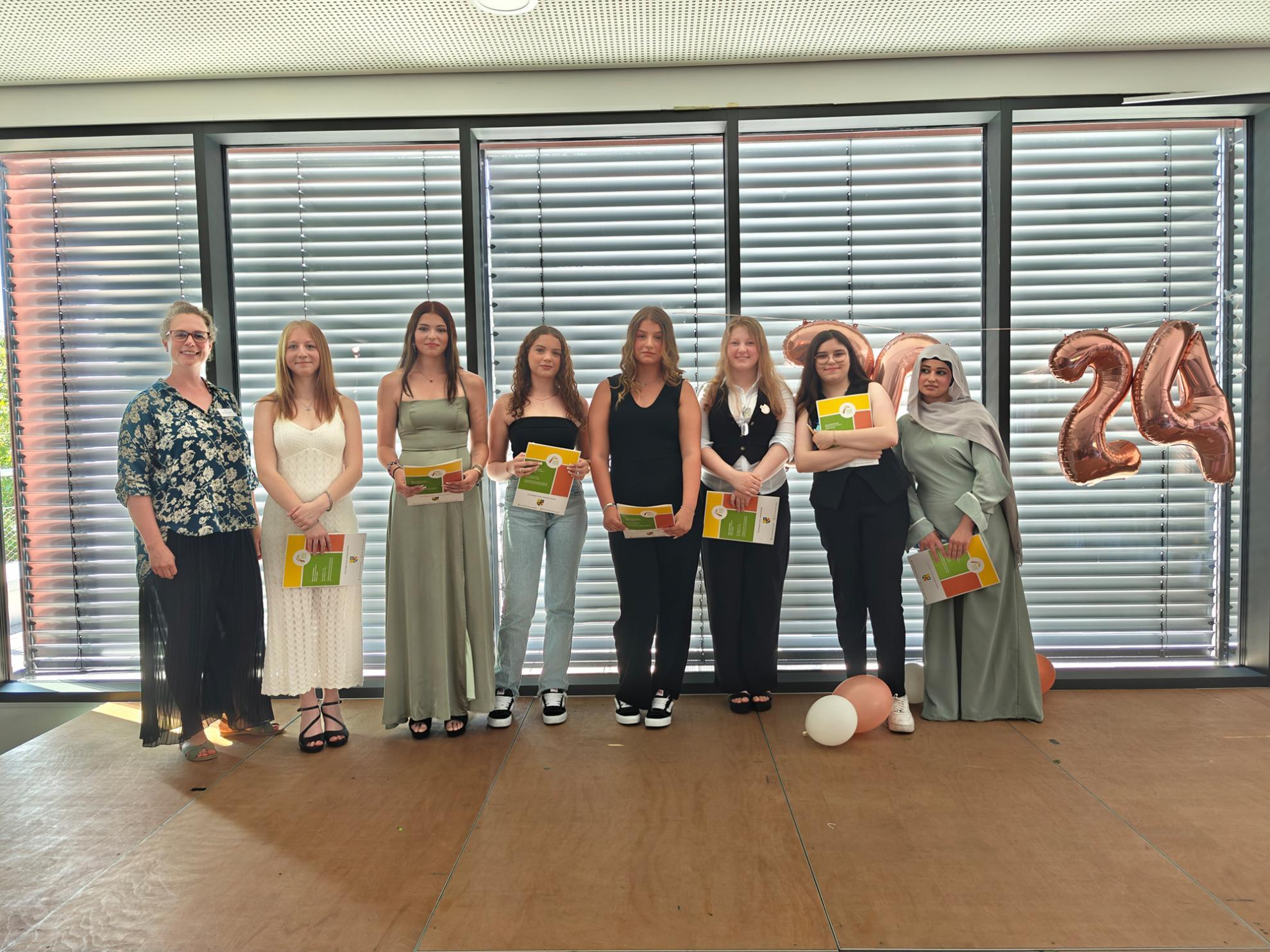 Die Absolvent:innen, die in diesem Jahr im AV den Hauptschulabschluss geschafft haben, kamen aus drei Klassen mit den Profilen „Gesundheit und Pflege“ oder „Ernährung und Hauswirtschaft“.