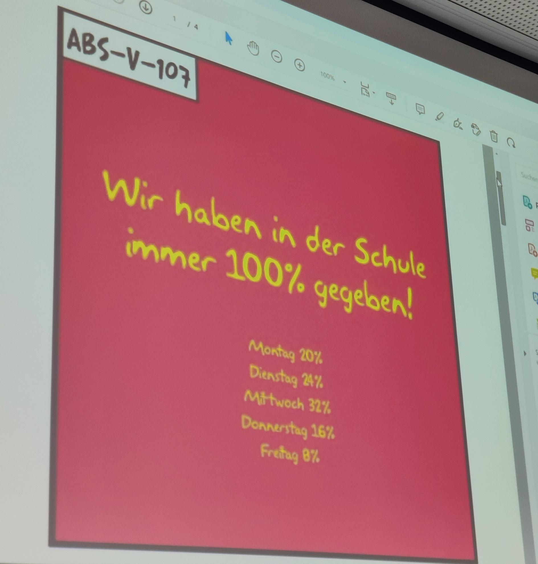 Petra Klausmann, die Klassenlehrerin der P2, lobte ihre Klasse: Sie habe in der Schule immer 100% gegeben: 20% am Montag, 24% am Dienstag, 32% am Mittwoch, 16% am Donnerstag und 8% am Freitag. Nur an Stiften habe es hin und wieder gemangelt, sodass Frau Klausmann für jede der Absolvent:innen zusätzlich zum Zeugnis einen eigenen Stift, angepasst auf die persönlichen Vorlieben und Eigenheiten, bereit hielt.