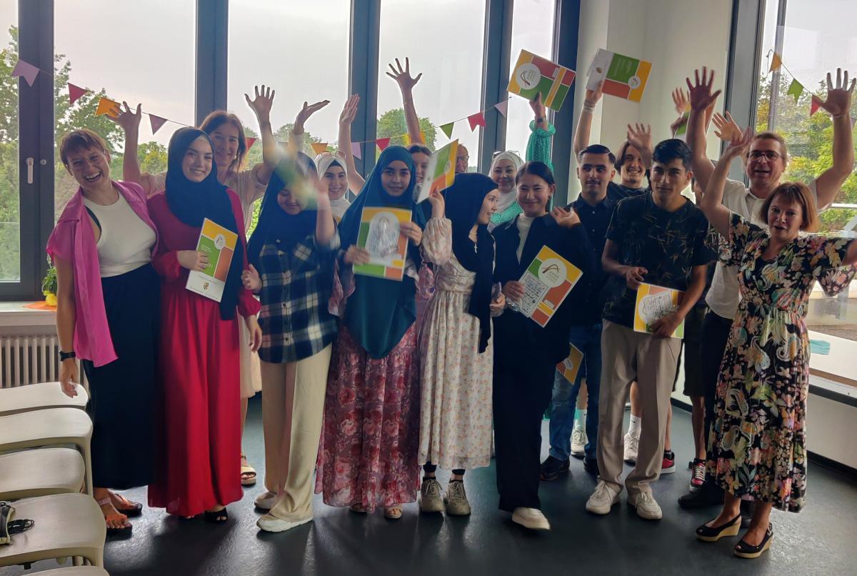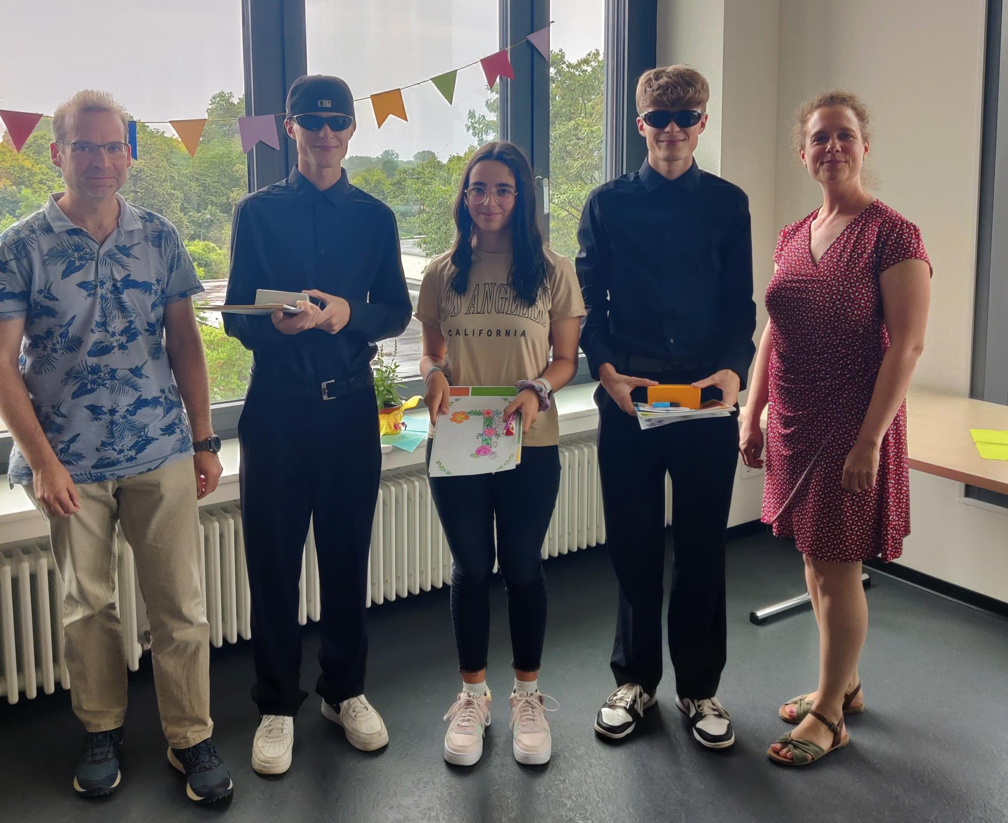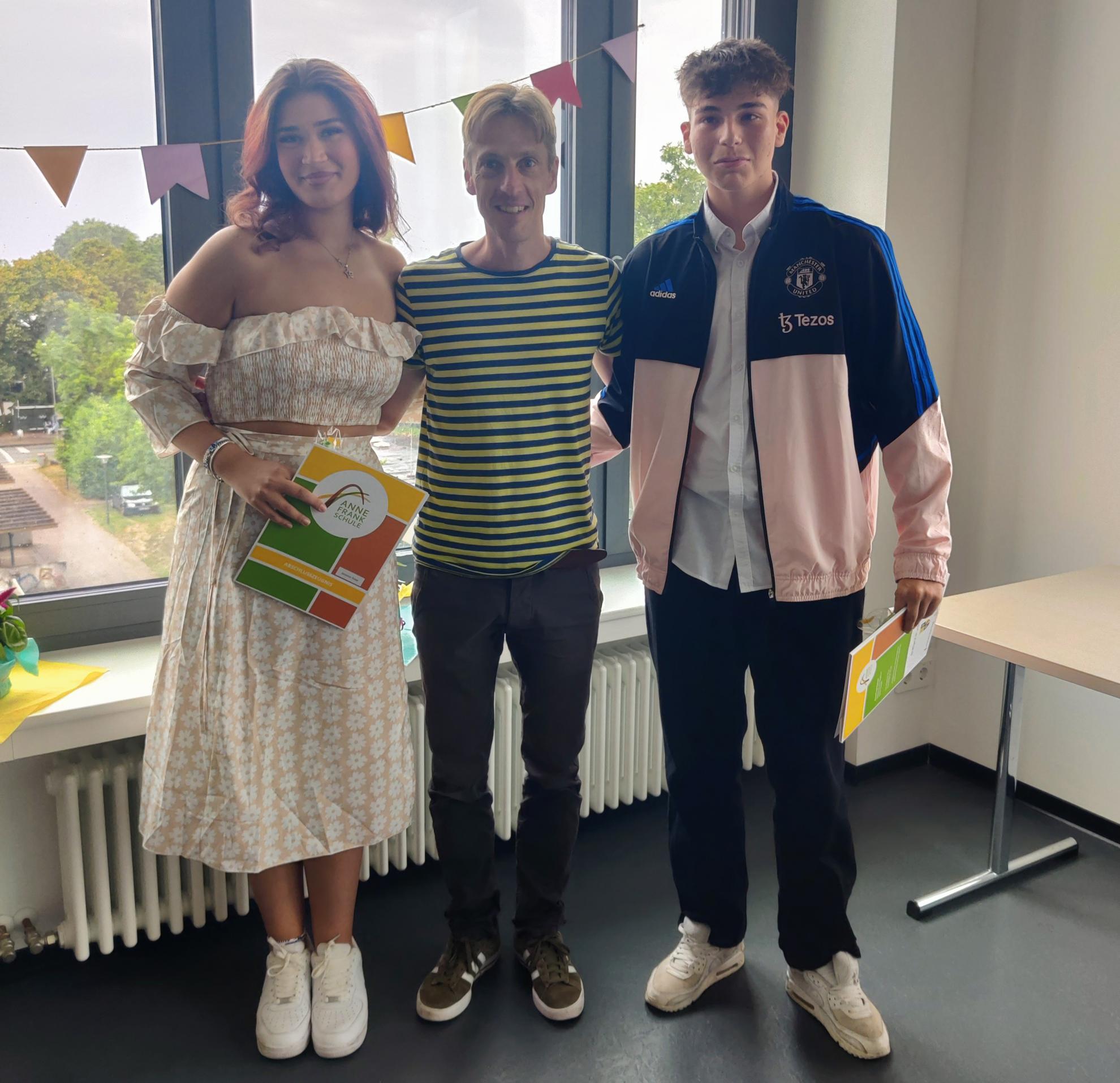 Frank Burkhardt, der Klassenlehrer der VABO, berichtete stolz, dass zehn seiner Schützlinge die Deutschprüfung für das A2-Niveau geschafft haben und sechs davon sogar die Prüfung für das B1-Niveau. Außerdem erhielten sieben der Schüler:innen einen Preis oder ein Lob für ihre Leistungen im Gesamtjahr. Der Großteil der Schüler:innen der Klasse, welche sich dieses Jahr aus insgesamt acht unterschiedlichen Nationen – nämlich Ukraine, Afghanistan, Iran, Irak, Syrien, Mazedonien, Griechenland und Kenia – zusammensetzt, wird an der Anne-Frank-Schule bleiben. In der Schulart AV werden sie dann nämlich auf ihren Hauptschulabschluss vorbereitet. Einige belegen in den Sommerferien noch einen Deutschkurs, um ihre Deutschkenntnisse weiter aufzubessern und ihre Ausbildungschancen zu erhöhen. Zum Abschied gab es für alle Schüler:innen neben dem Zeugnis noch ein Armband und eine Karte mit persönlichen Grüßen.