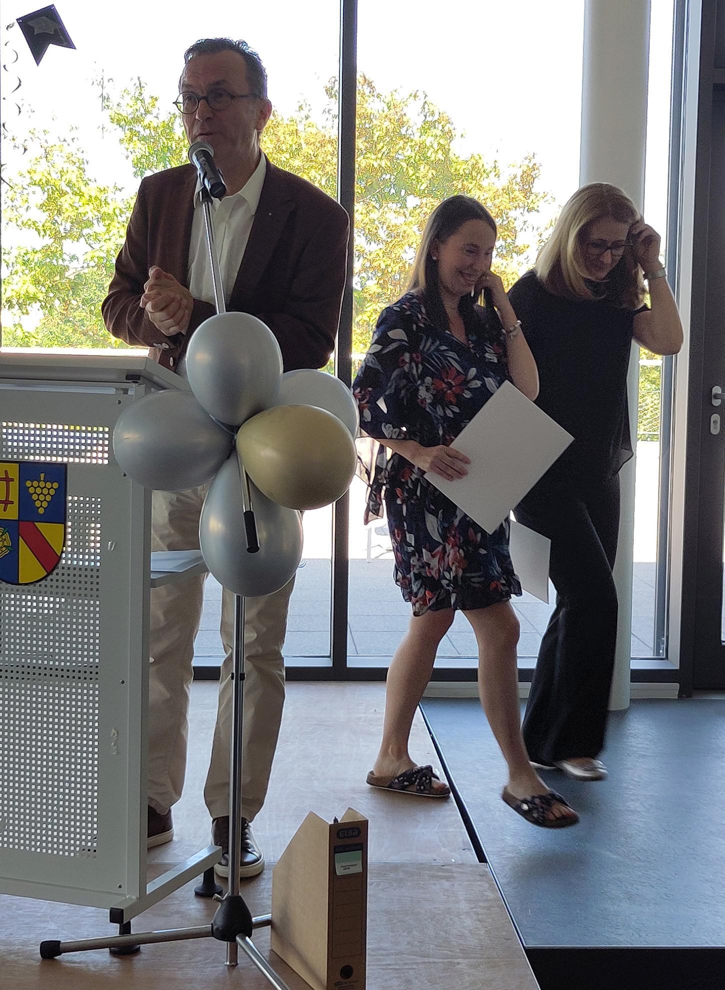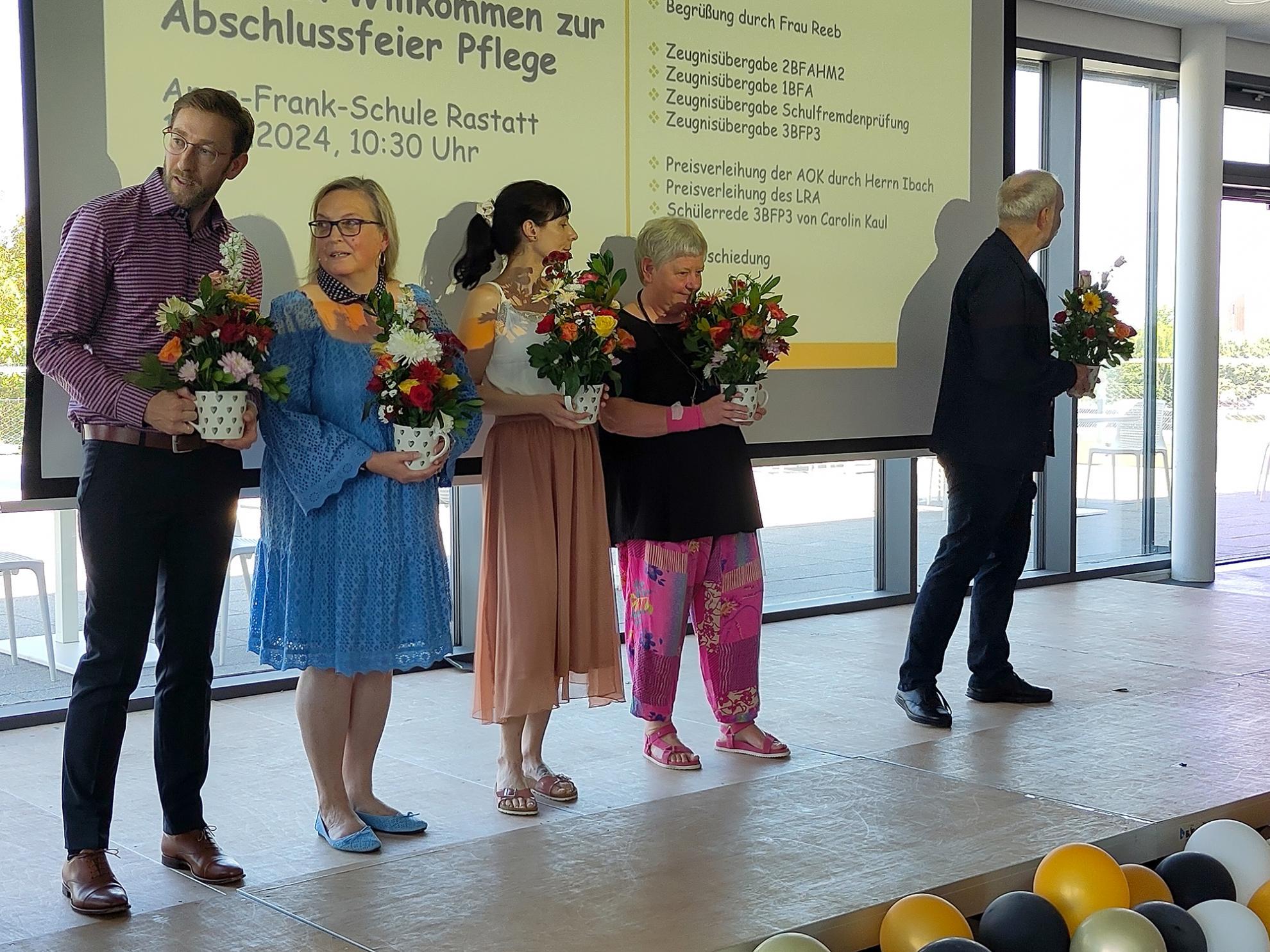 Die Klassenlehrkräfte Louis Reiss (3BPF3), Dagmar Schlander, stellvertretend für Dominique Frenk (2BFAHM2) sowie Sophia Kändler und Lena Faltin (1BFA) fanden persönliche Worte für ihre Absolvent:innen, sie alle gratulierten ebenfalls und entließen ihre Schützlinge nun bestens gerüstet für den herausfordernden Berufsalltag.