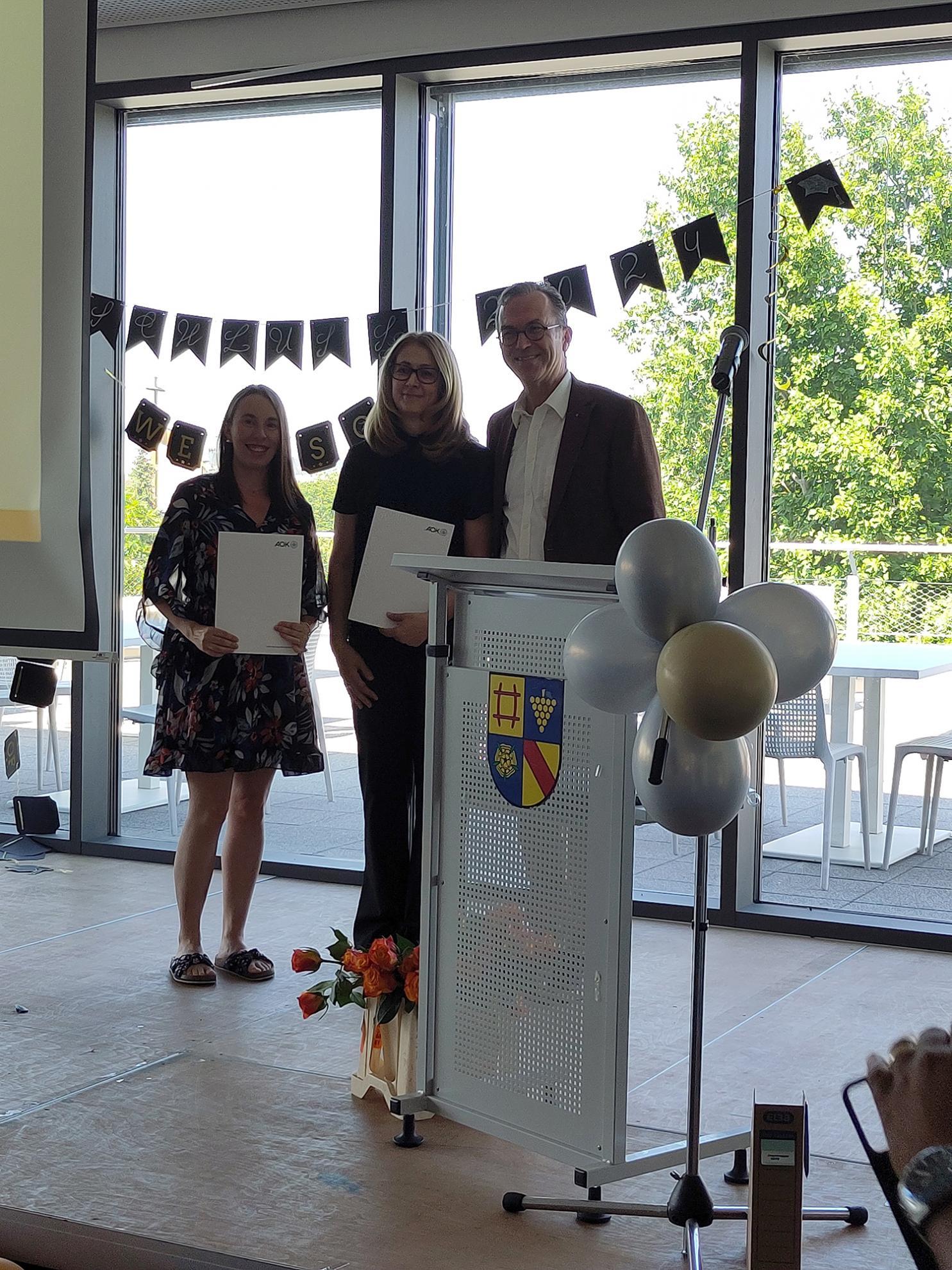 Im Anschluss an die Zeugnisausgabe hielt Carolin Kaul aus der 3BFP3 eine kurze Danksagungsrede und auch Herr Ibach, der Stellvertreter der AOK, richtete ein paar Worte an die Absolvent:innen. Er betonte, dass Pflege nicht nur ein Beruf, sondern vielmehr eine Berufung sei. Der Preis der AOK für die beste praktische Prüfung stehe außerdem für Empathie und Menschlichkeit.