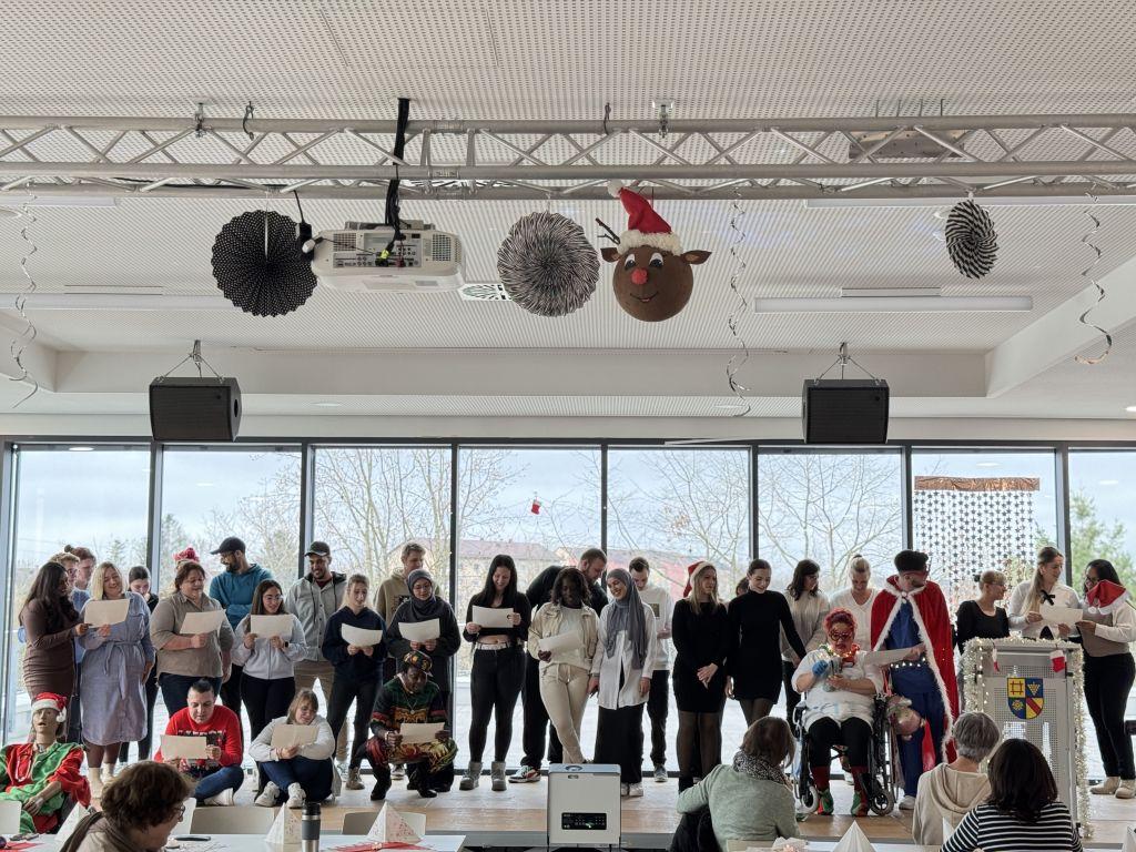 Die Klassen 3 BFP 1 und 3 BFP 2 haben in der letzten Schulwoche für sich und ihre Praxisanleiter eine Adventsfeier in der Mensa organisiert. Es gab ein leckeres Buffet mit internationalen Spezialitäten und ein tolles Programm: Weihnachtsquiz, gemeinsames Singen, eine Adventsgeschichte, einen Tanzbeitrag und es wurde Bingo gespielt.