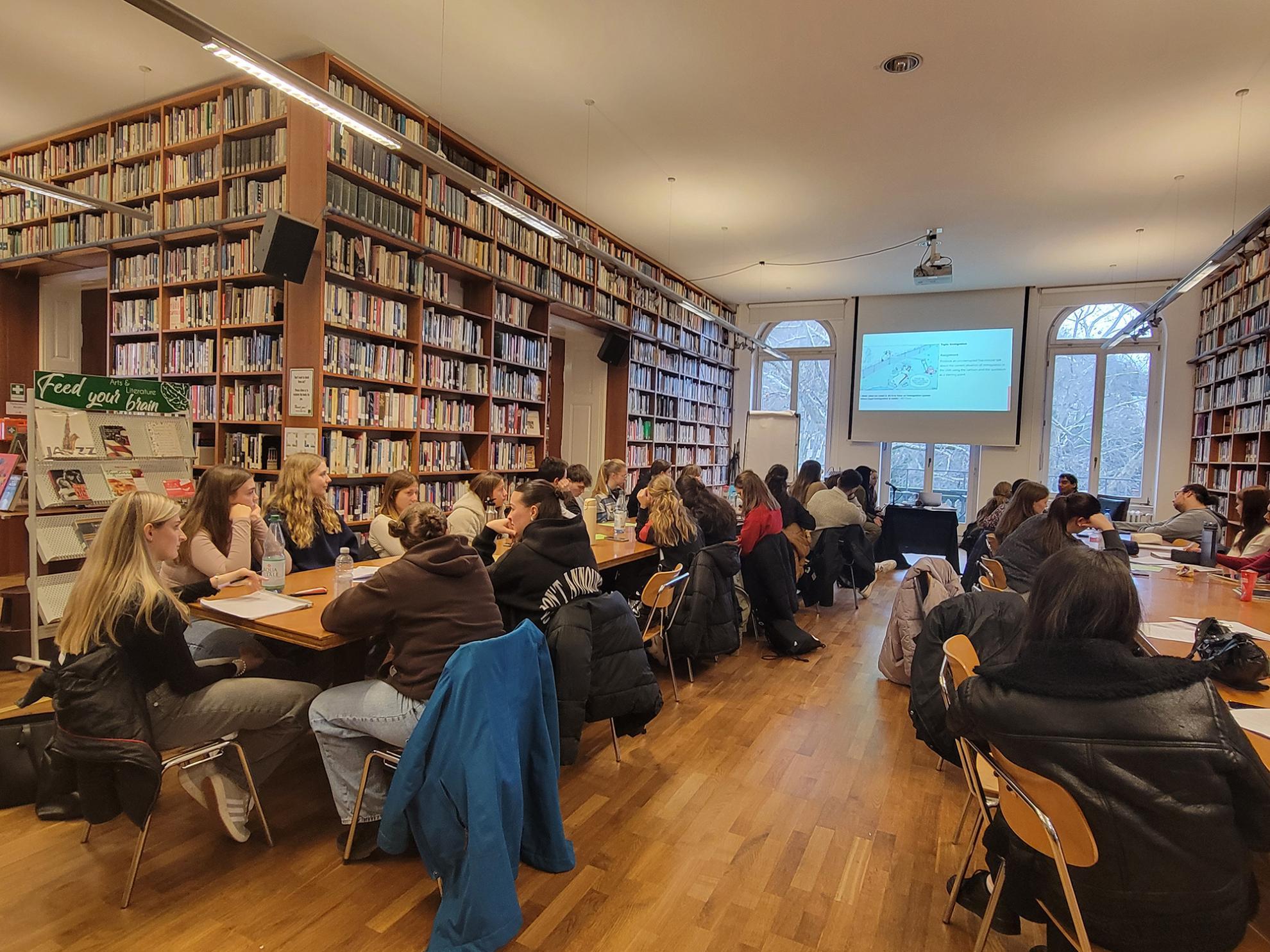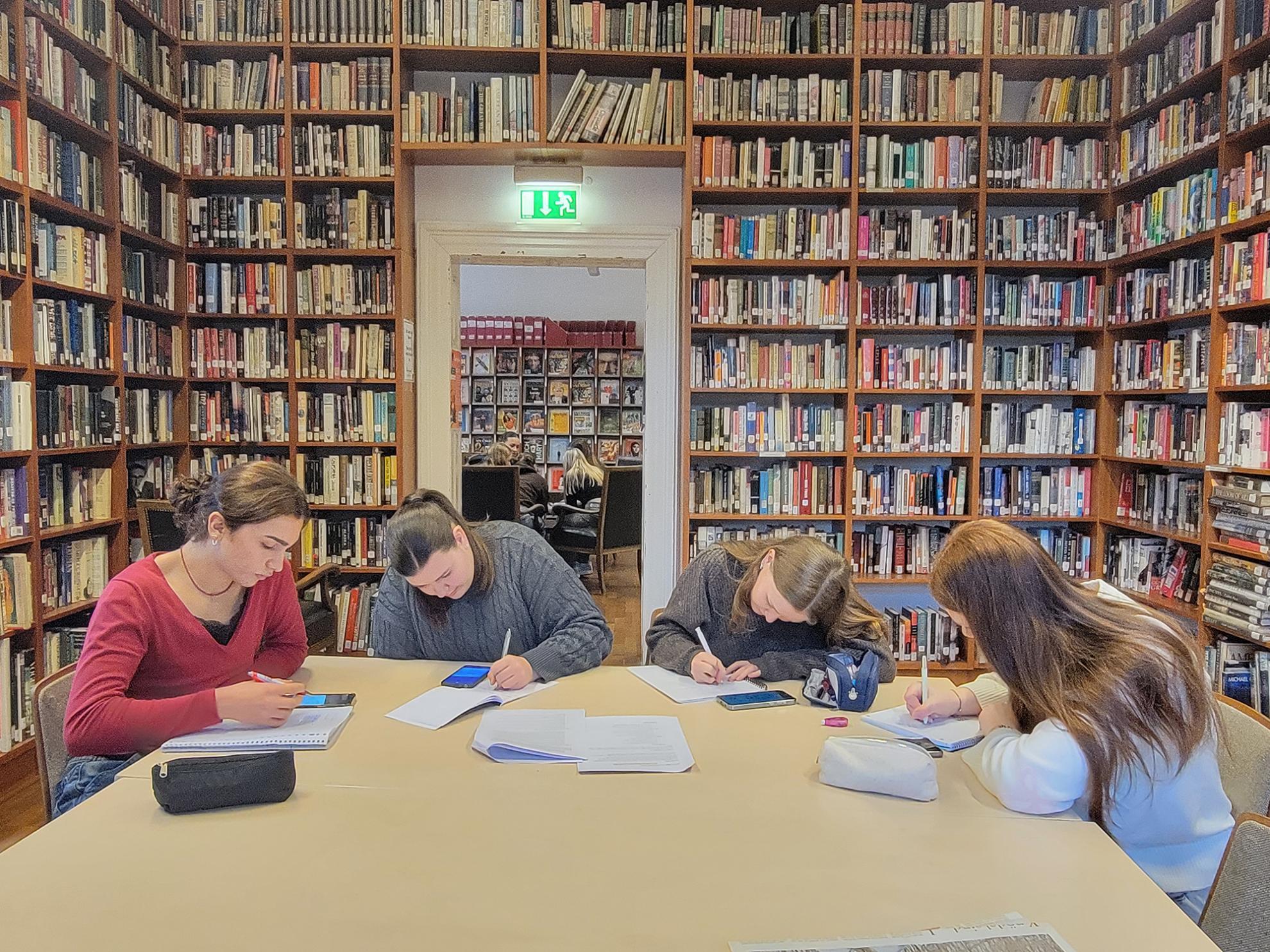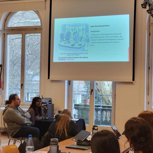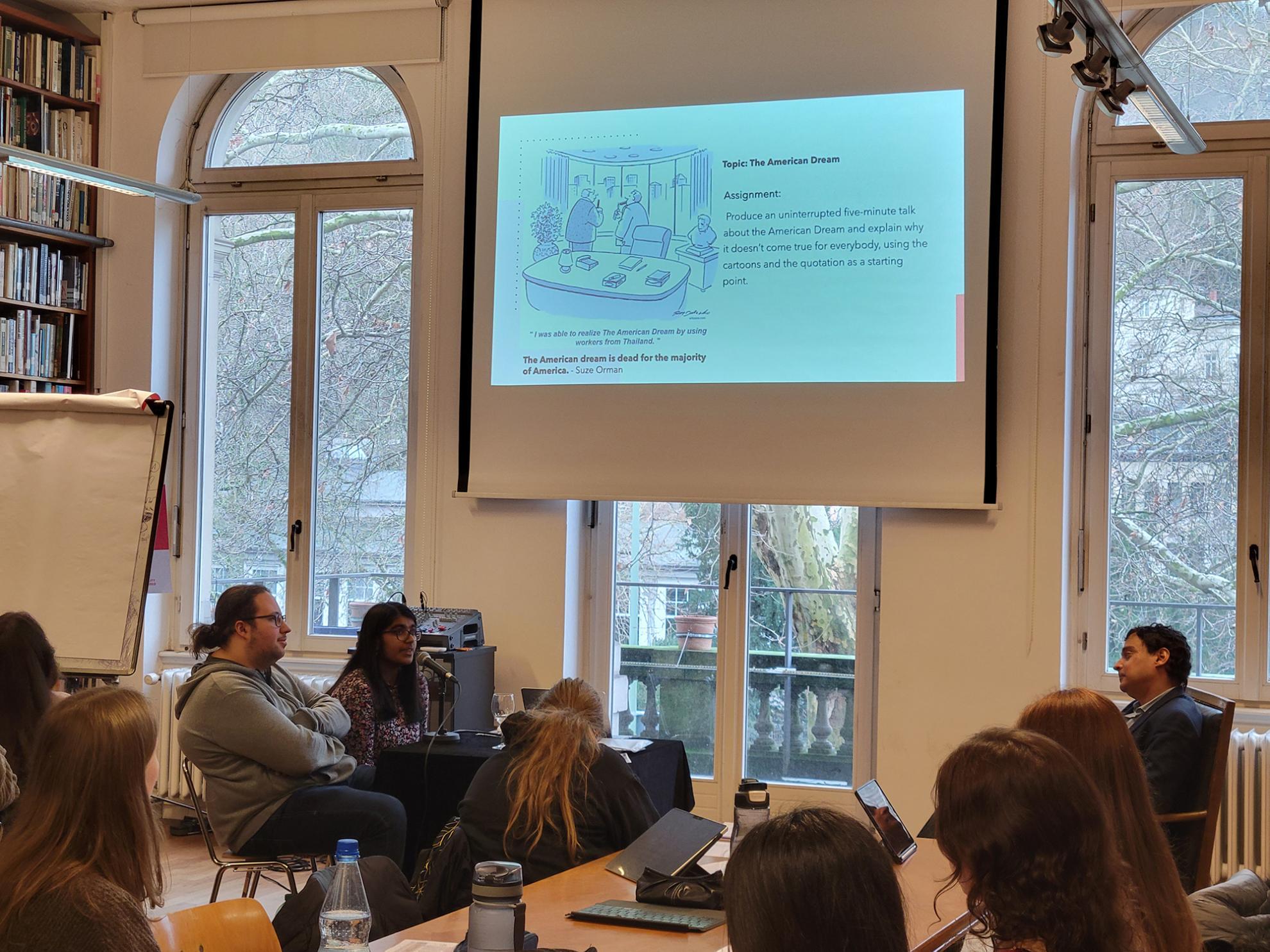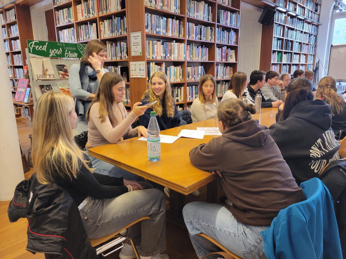 Am Montag, den 27.01.25 waren die beiden J2-Englischkurse mit ihren Lehrkräften Frau Helfer und Frau Engel im Deutsch-Amerikanischen Institut in Heidelberg.