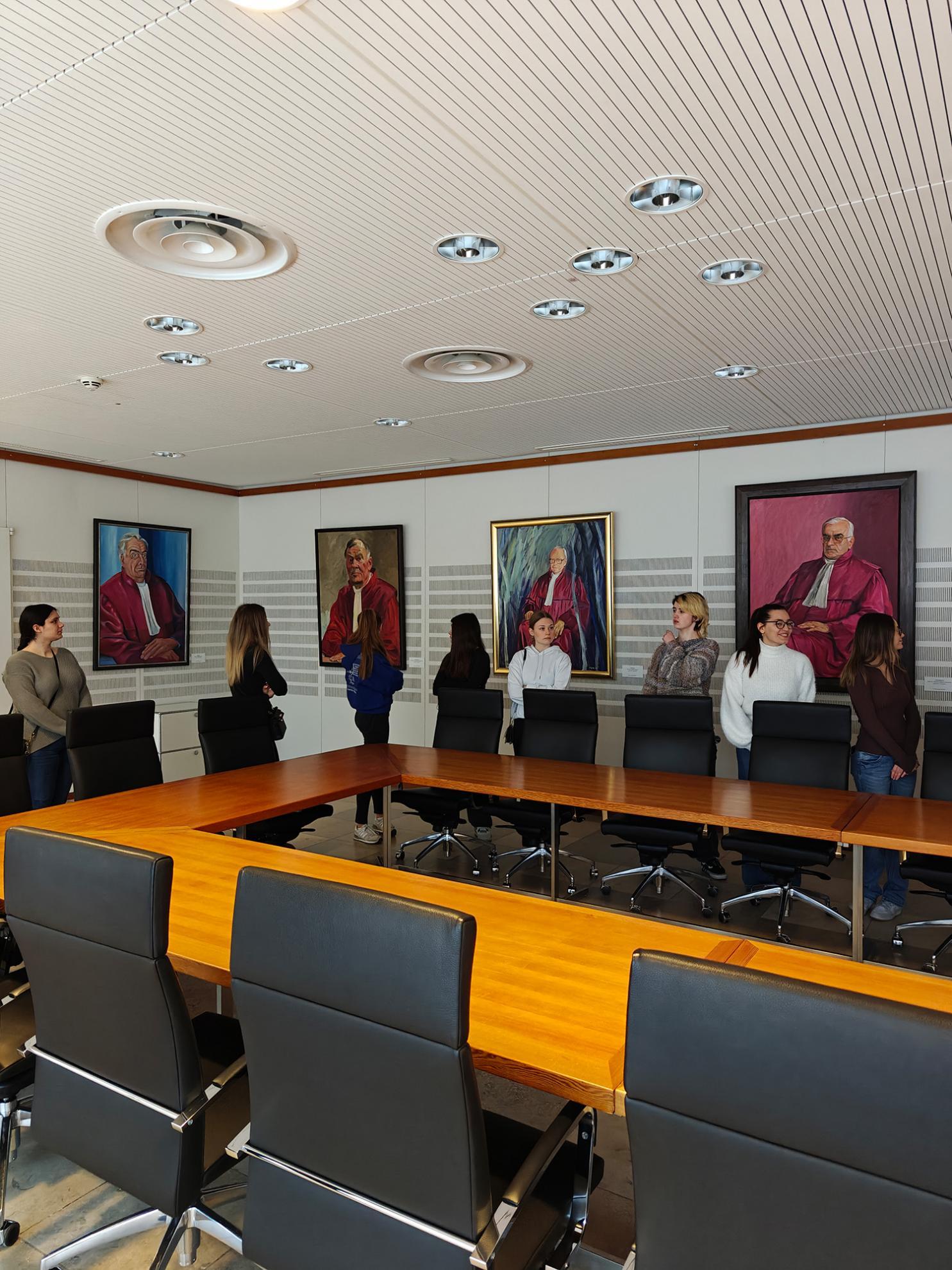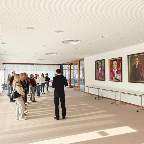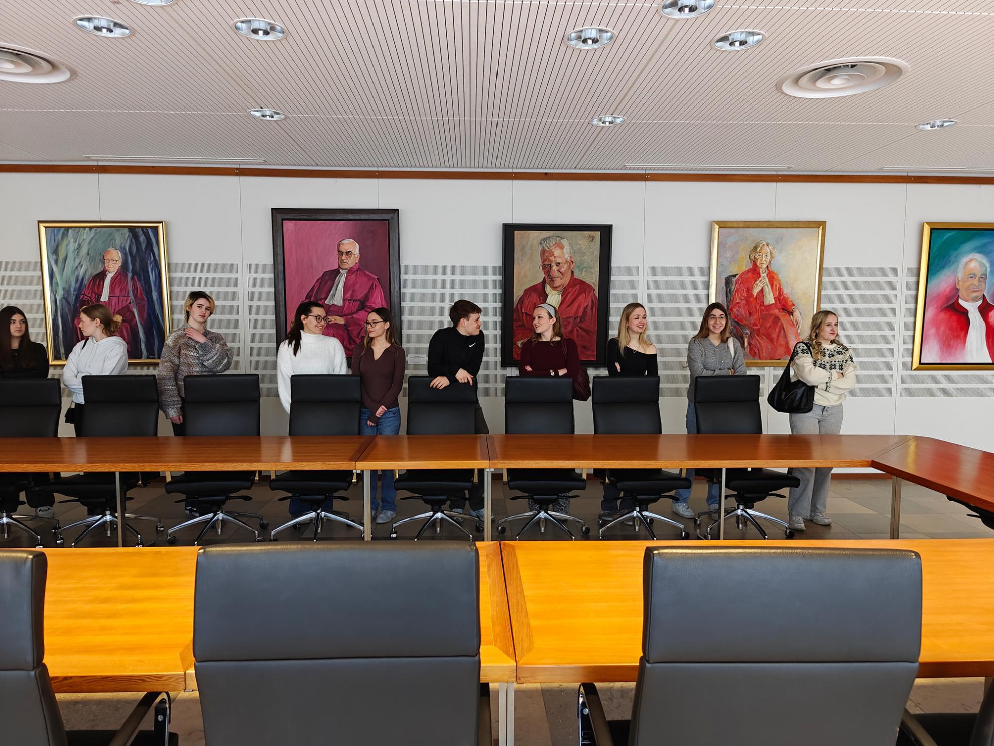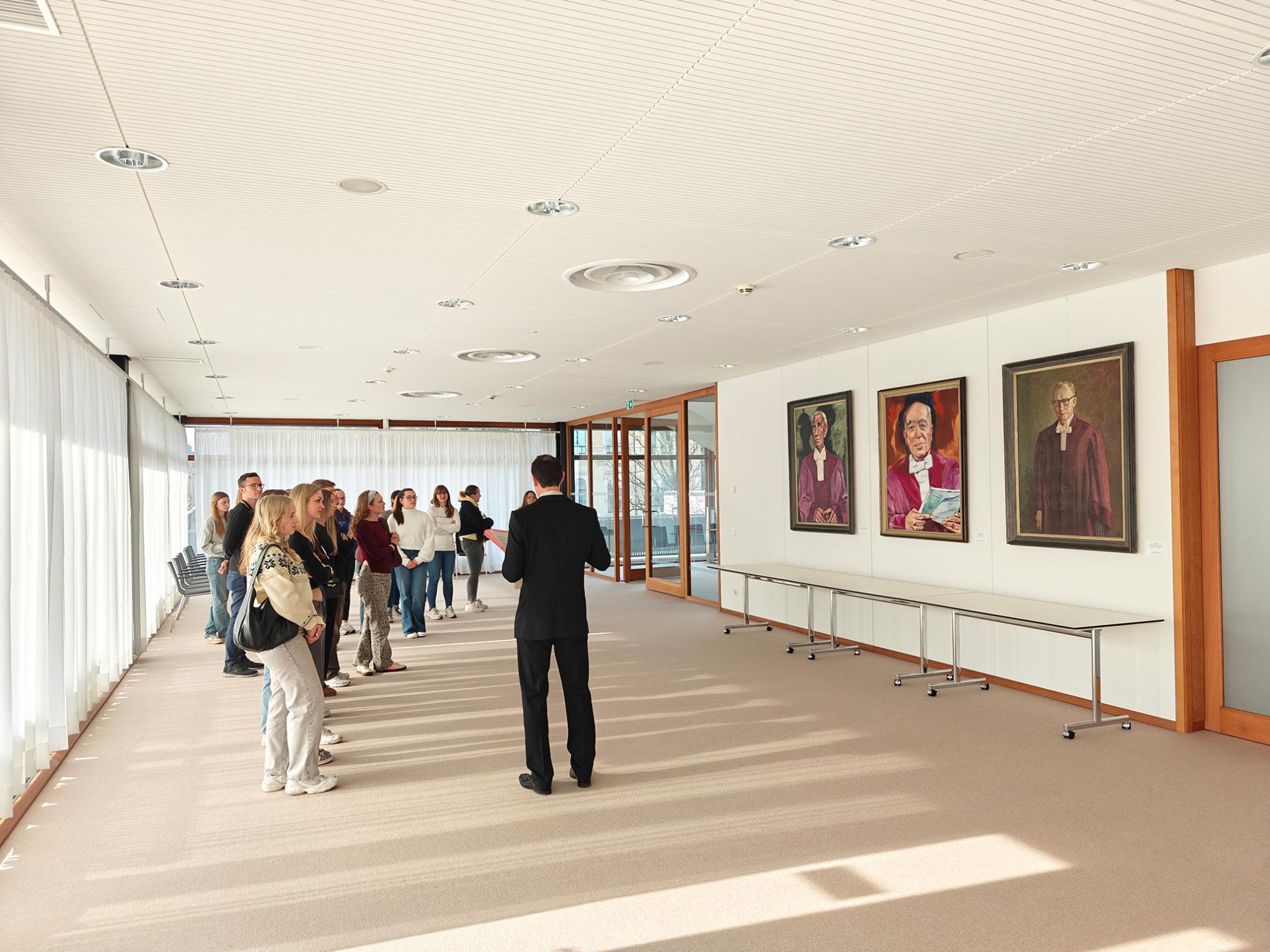 Ein Rechtspfleger führte durch die beeindruckenden Räumlichkeiten und erklärte, wie hier täglich über Grundrechte und wichtige Verfassungsfragen entschieden wird.