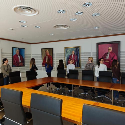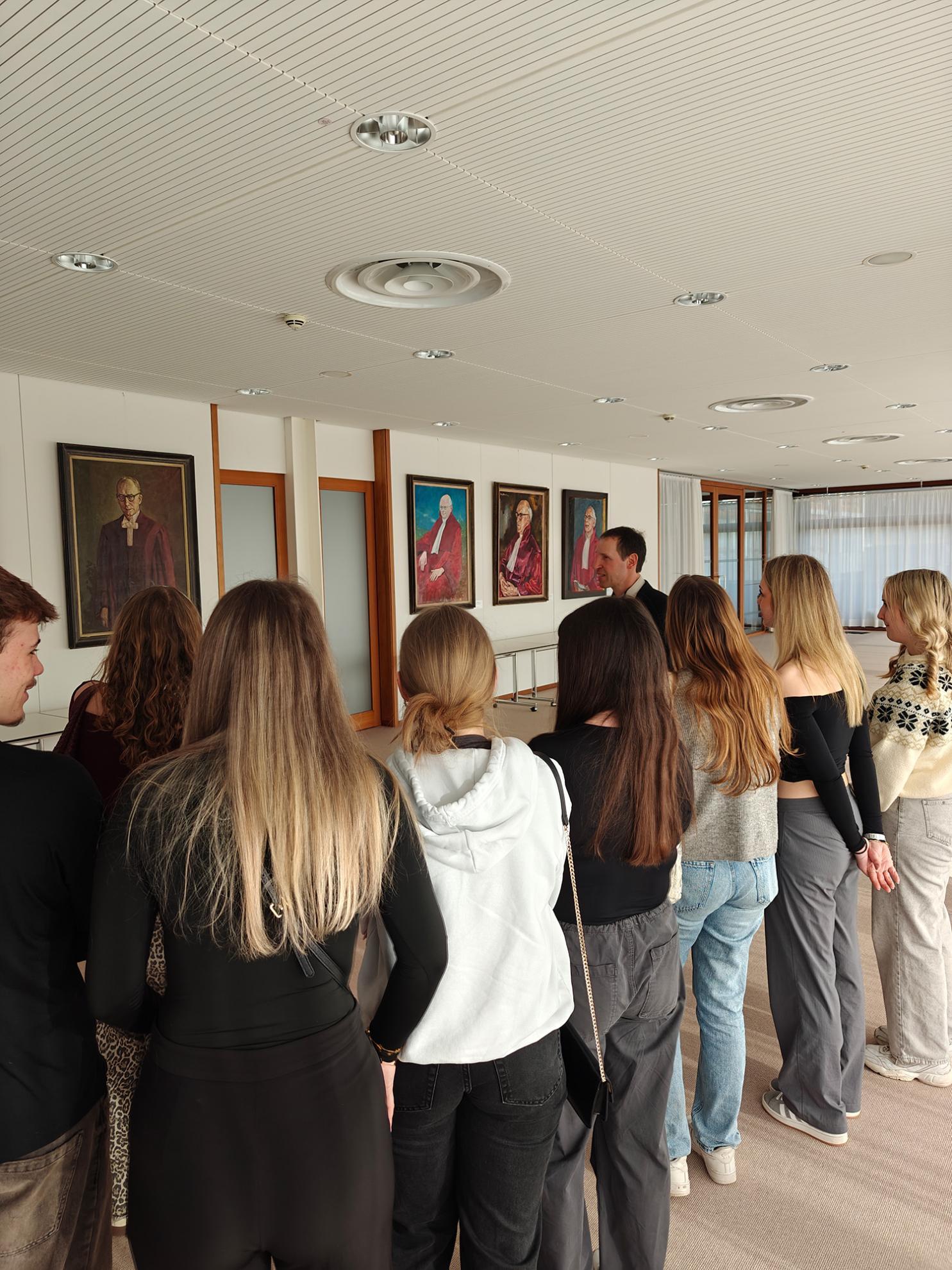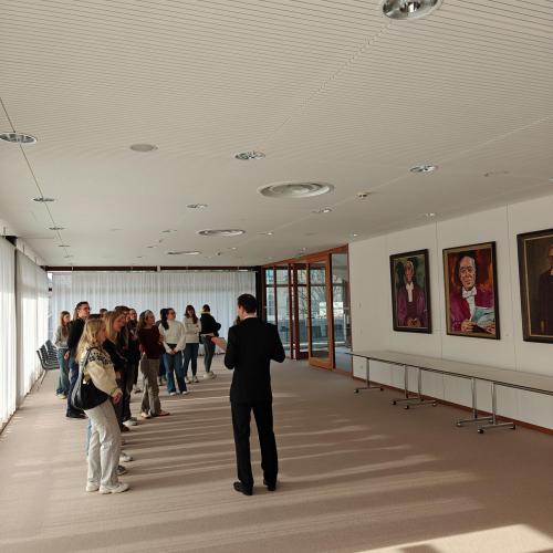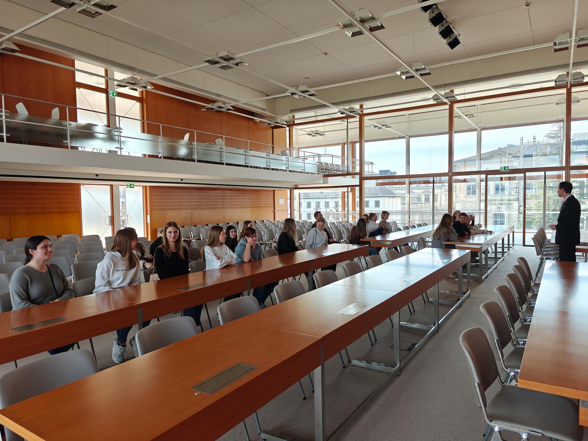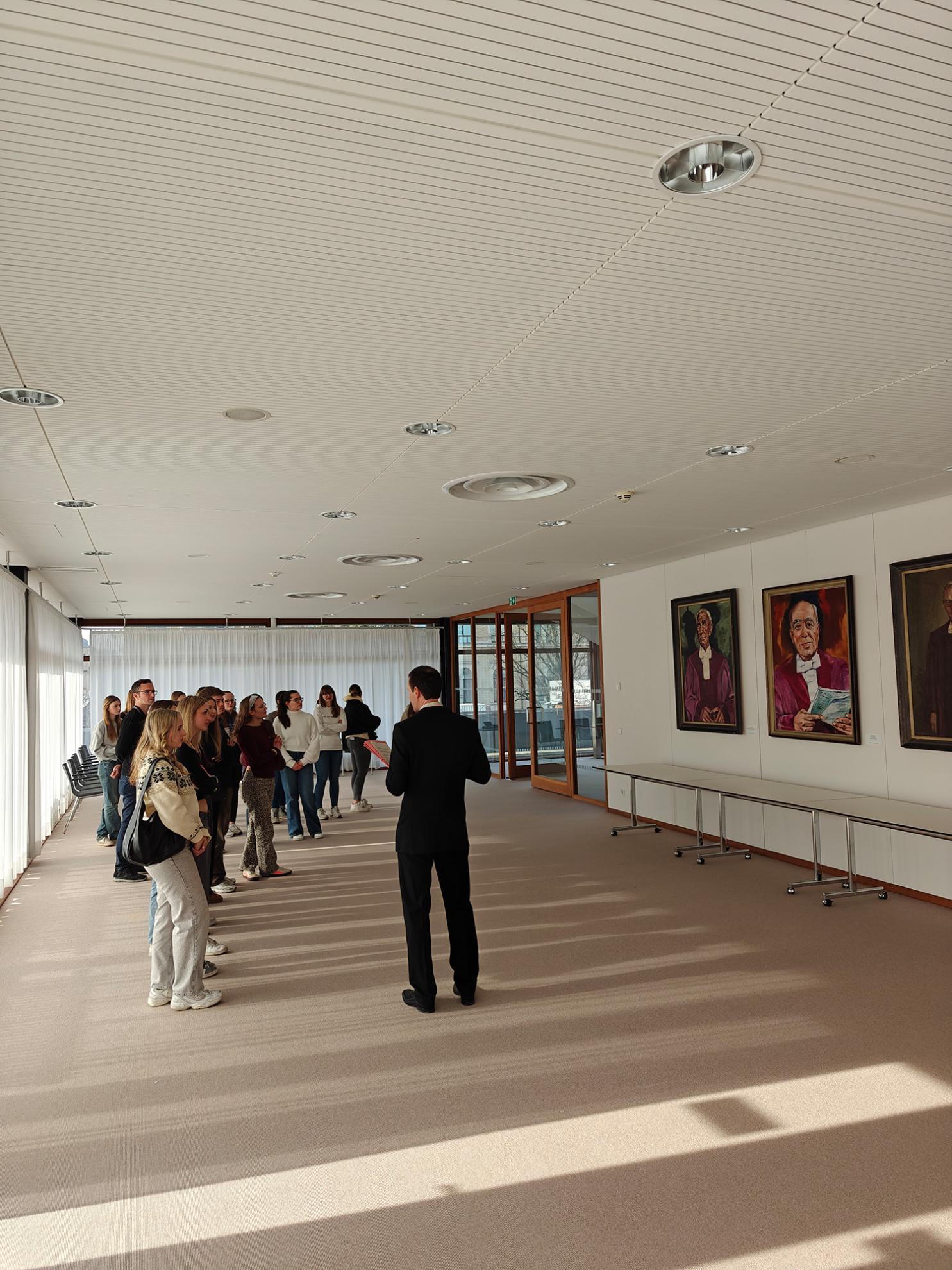 Ein Rechtspfleger führte durch die beeindruckenden Räumlichkeiten und erklärte, wie hier täglich über Grundrechte und wichtige Verfassungsfragen entschieden wird.