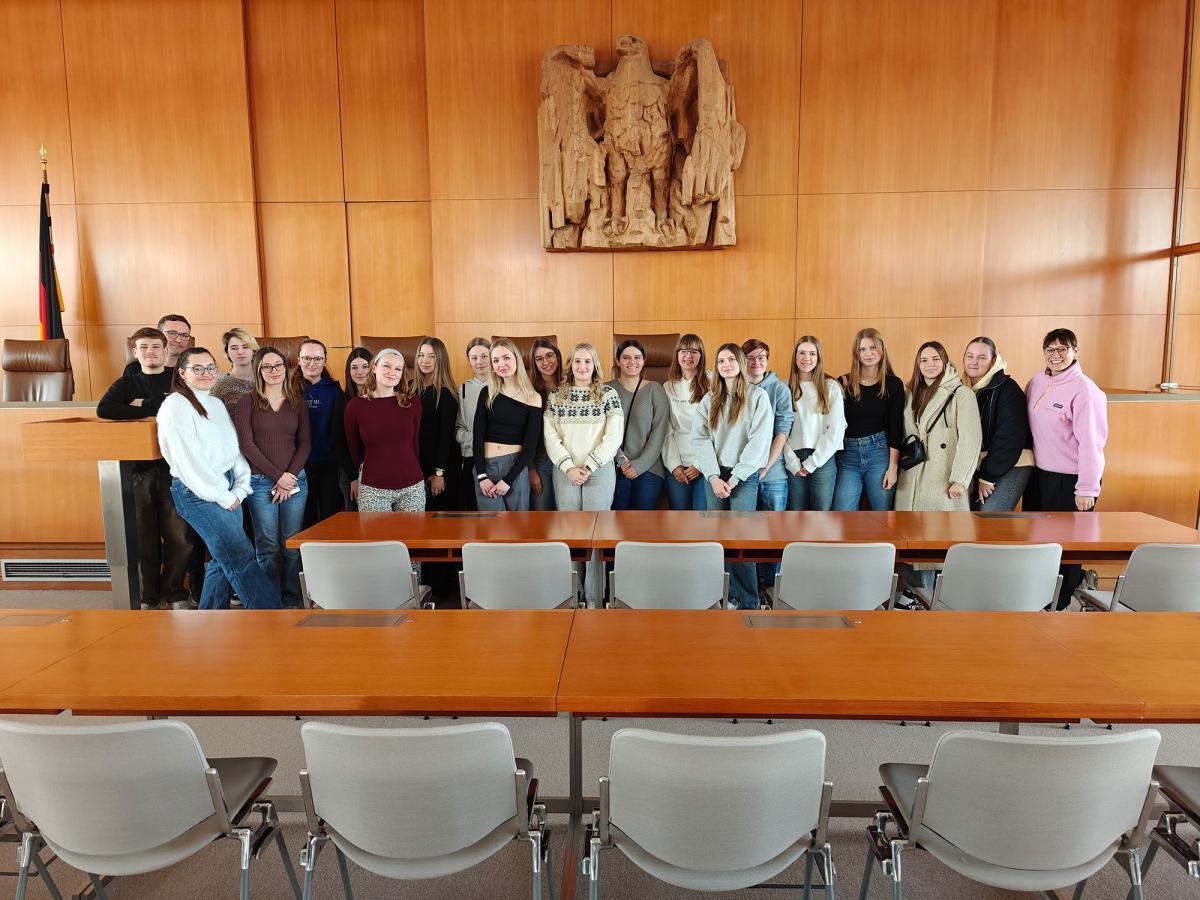 Diese Woche besuchte die SG J1/1 gemeinsam mit ihren Klassenlehrkräften Frau Pöss und Herr Eiselstein das Bundesverfassungsgericht in Karlsruhe. Die Klasse bekam exklusive Einblicke in die Arbeit der höchsten Richter:innen Deutschlands.