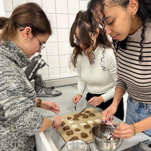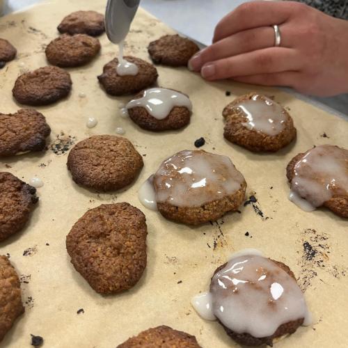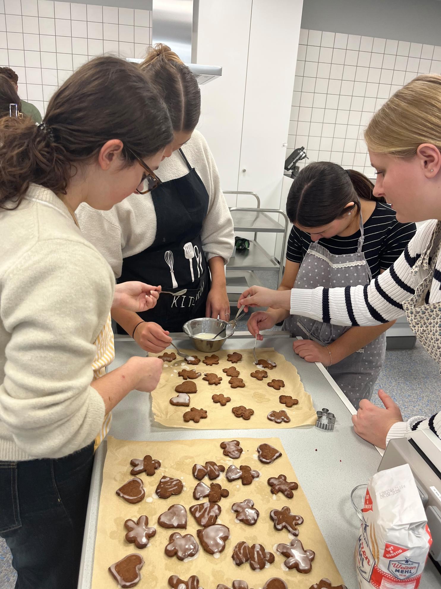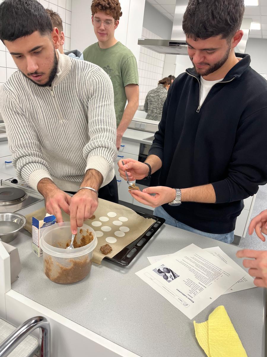 Ohne große Kleckerei haben die Schüler:innen der J2 am vergangenen Dienstag im Fach „Sondergebiete der Ernährungswissenschaften“ zusammen mit ihrer Lehrerin Frau Trunz viele Leckereien hergestellt: feinste Lebkuchen.