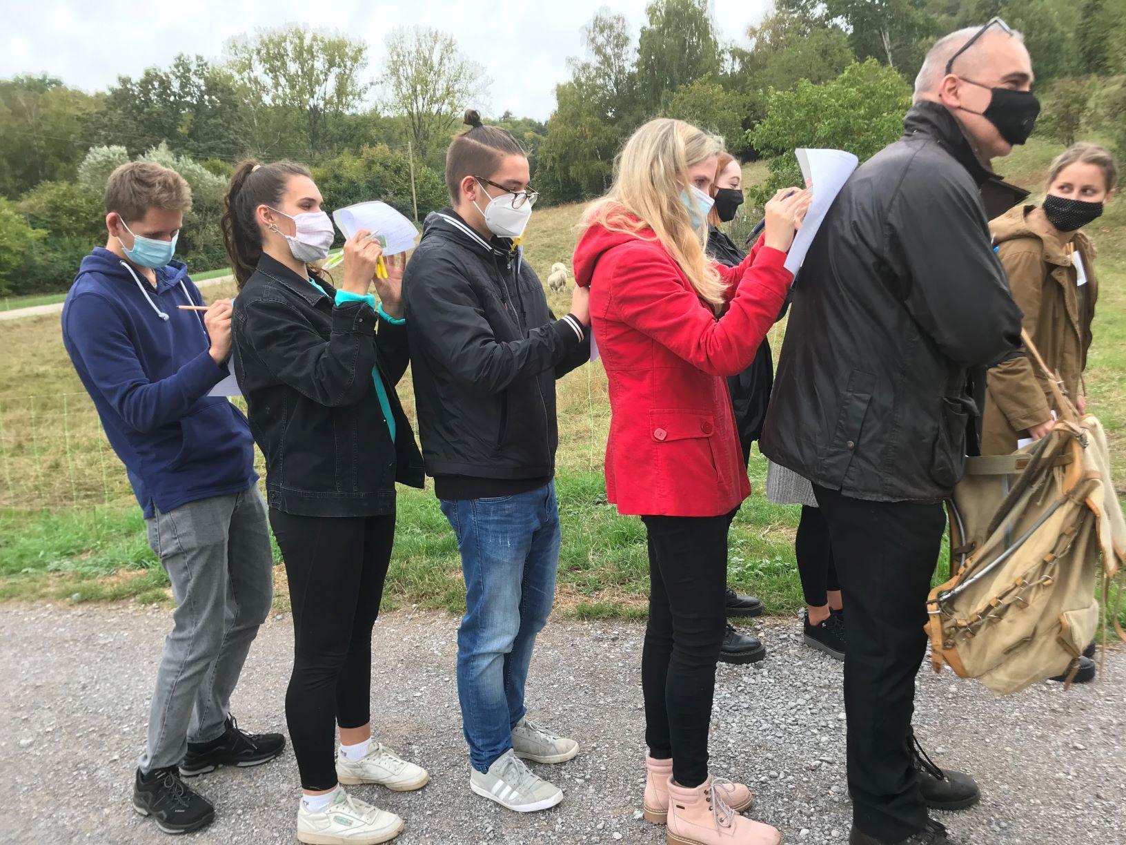 Dabei galt es zunächst die Perspektiven verschiedener dort lebenden Tiere einzunehmen. Eine fragebogengestützte Erkundung der dortigen Infotafeln führte zu Fachwissen, das bei der Umsetzung mit den Kindern wertvolles Hintergrundwissen darstellt. Denn auch wenn Nachhaltigkeit uns alle angeht, ist die Perspektive in der Erzieherausbildung eine andere als im eigenen Alltag – hier lautet sie: „Wie kann ich diese Themen mit den Kindern im Alltag umsetzen?“ Und Streuobstwiesen bieten, wie die Auszubildenden im abschließenden Austausch mit den Lehrkräften Herr Walschburger und Frau Quellmalz festgestellt haben, viele Ansatzpunkte Kinder für Nachhaltigkeit zu sensibilisieren.