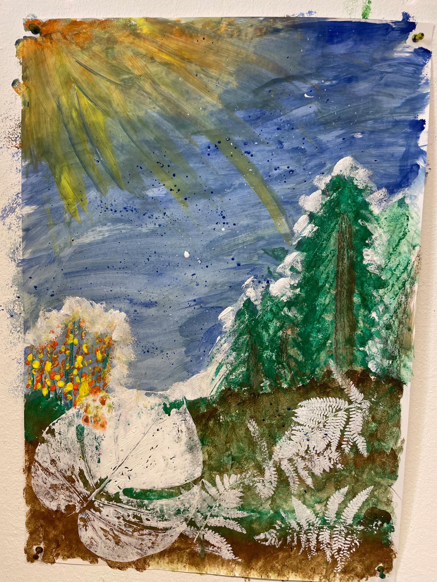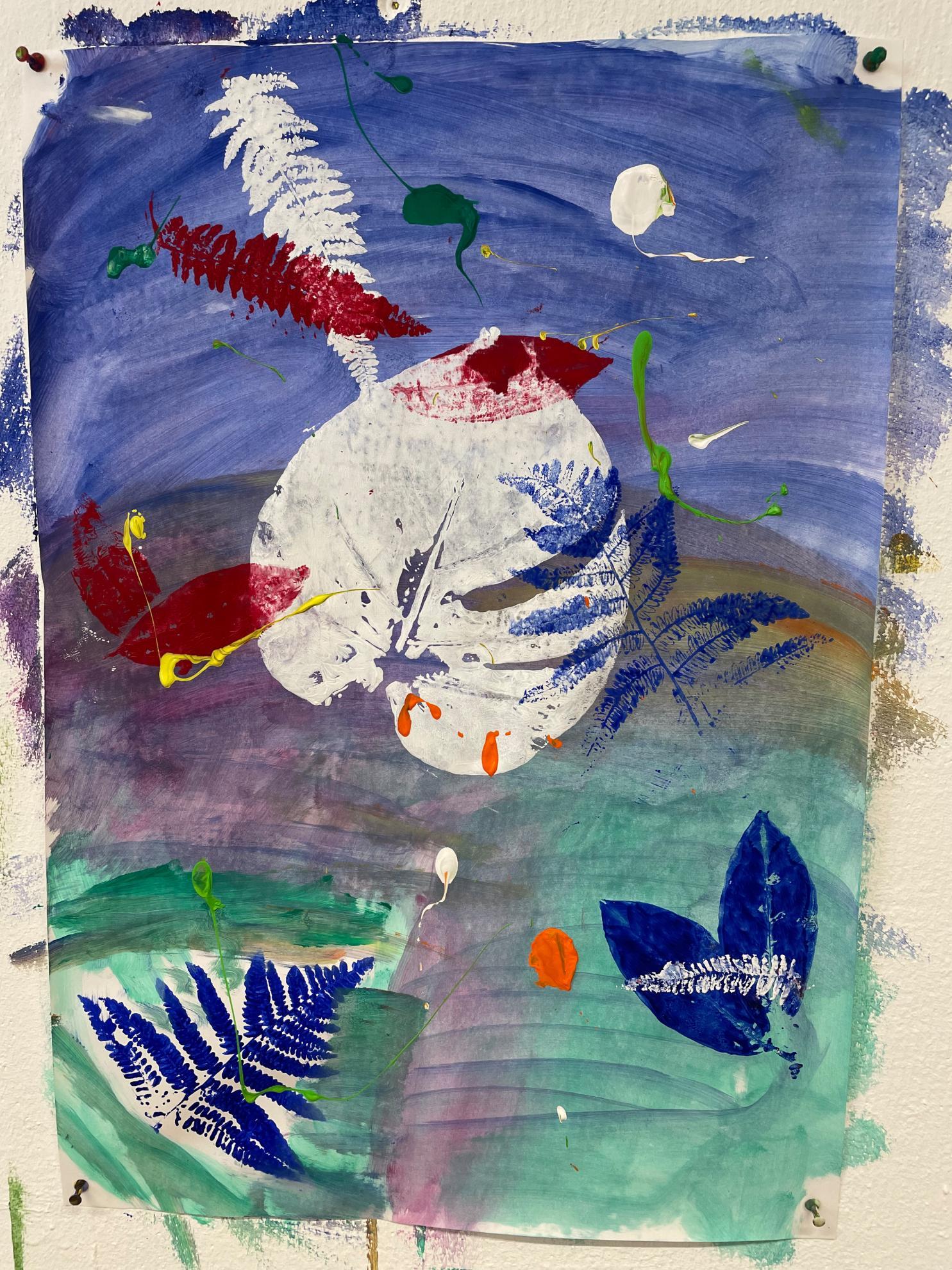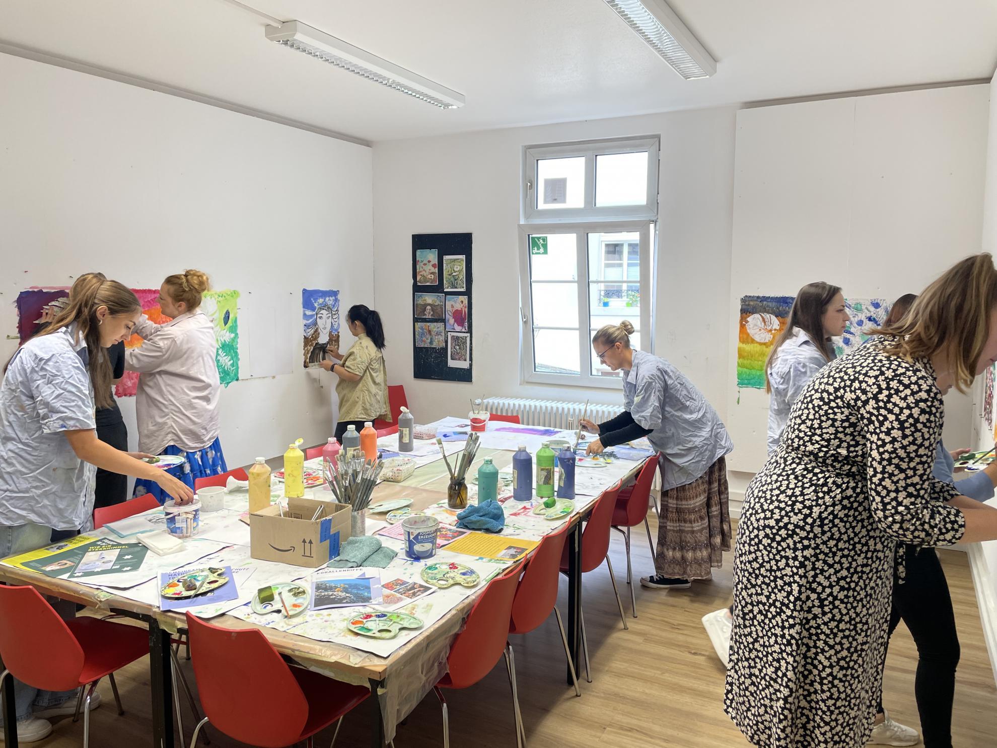 In der Kunstwerkstatt konnten die Schüler:innen im Anschluss selbständig kreativ aktiv werden und mittels Malerei und Druck erste Ideen einer Auseinandersetzung mit der Natur umsetzen. Tolle und vielfältige Werke sind dabei entstanden.