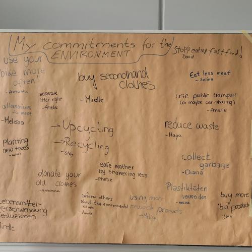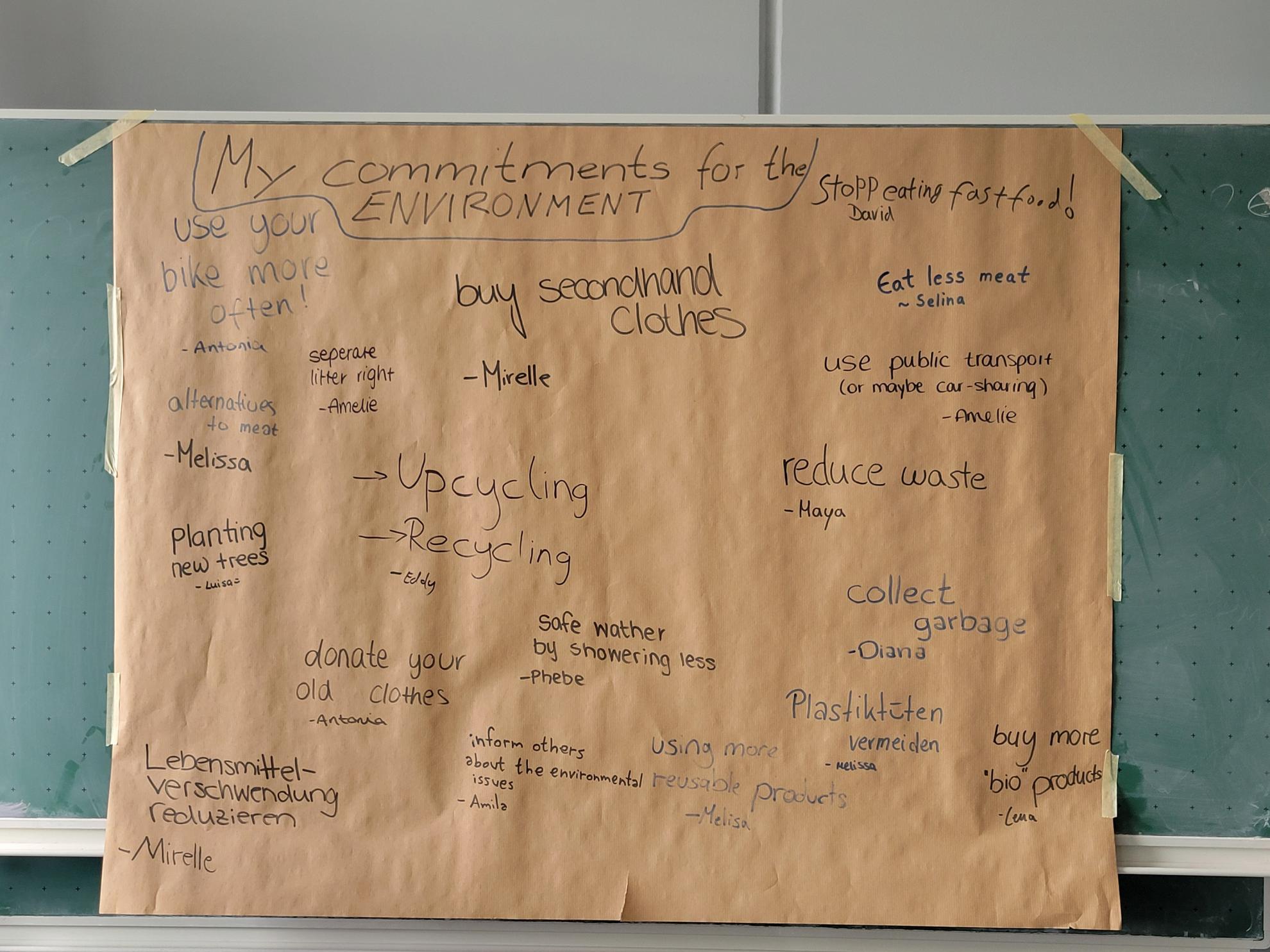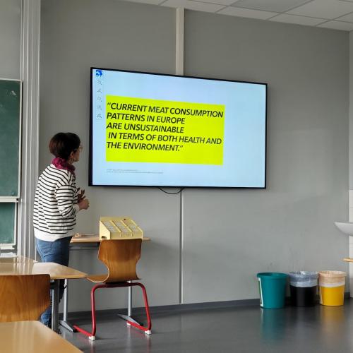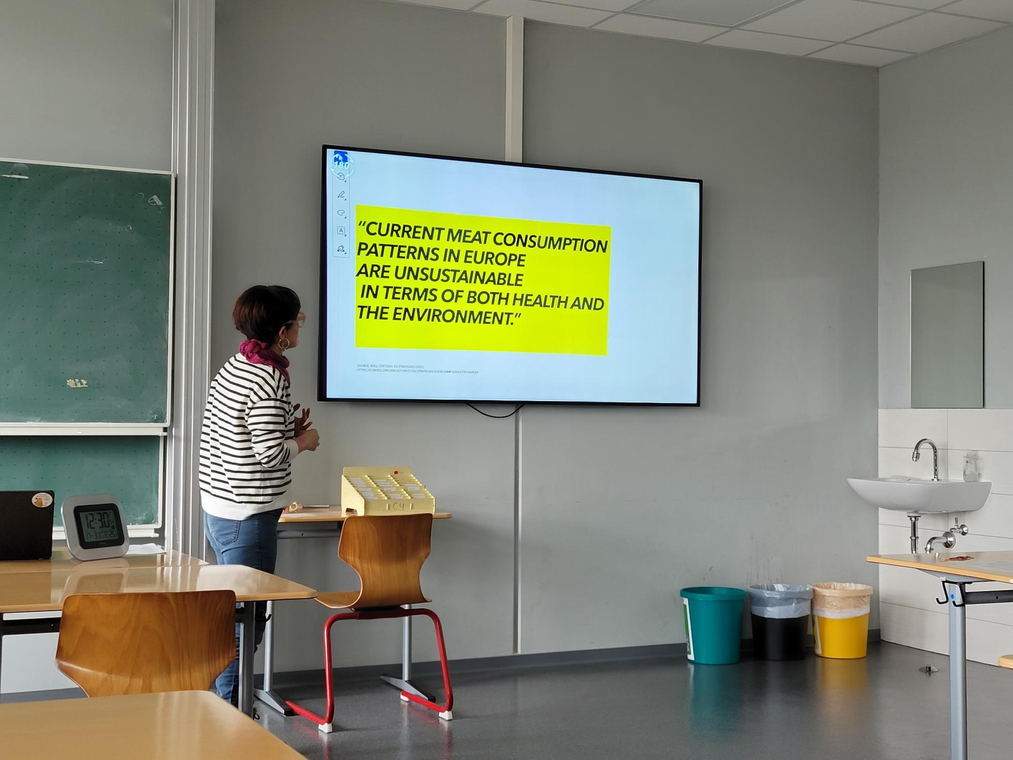 In dem Workshop von Frau Torres aus Peru ging es um die versteckte traurige Wahrheit hinter der Fleischherstellung und Vermarktung und wie ein jeder Mensch einen Unterschied machen kann. Mit sehr abwechslungsreichen Methoden ließ sie die Schüler:innen mitarbeiten und vermittelte die Botschaft, dass wir mit den vorhandenen Resourcen sorgsam umgehen müssen.