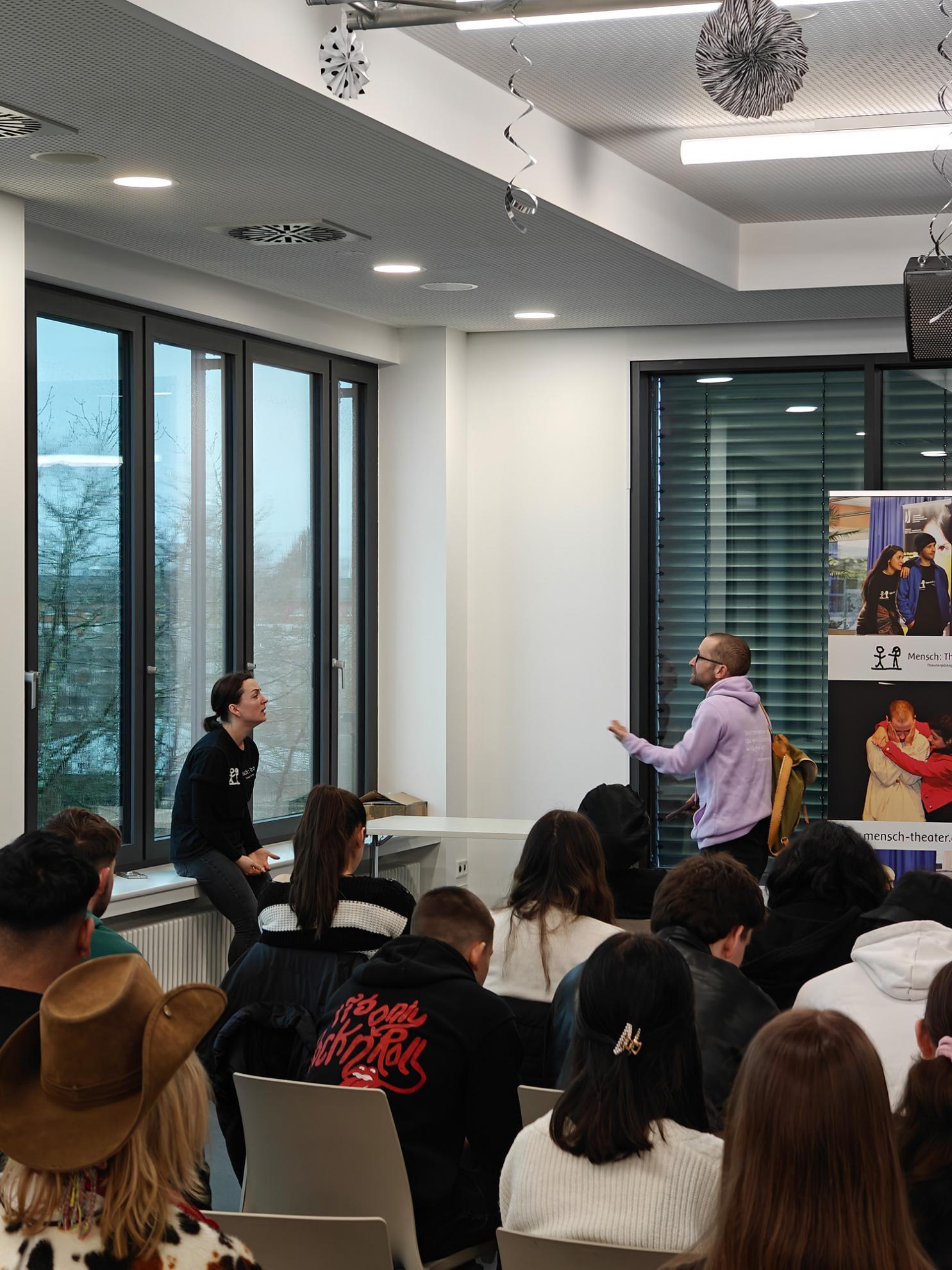Letzte Woche durften wir erneut die Schauspieler:innen von Mensch: Theater! bei uns begrüßen. Im interaktiven Theaterstück „Ich gebe dir mein Ehrenwort“ wurden in verschiedenen Szenen Konflikte behandelt, unter denen besonders Jugendliche aus patriarchalisch geprägten Familien leiden.
