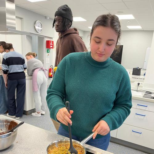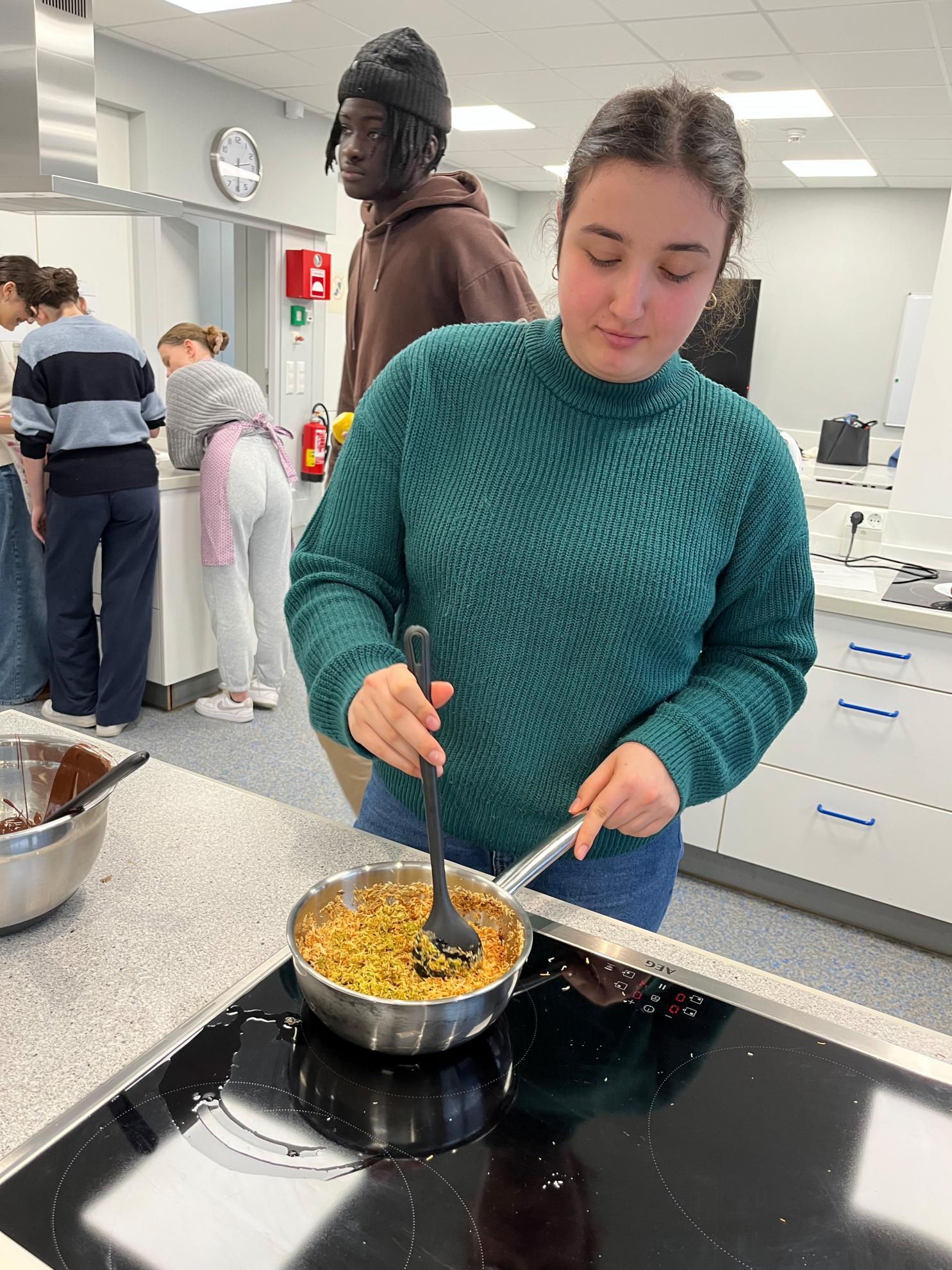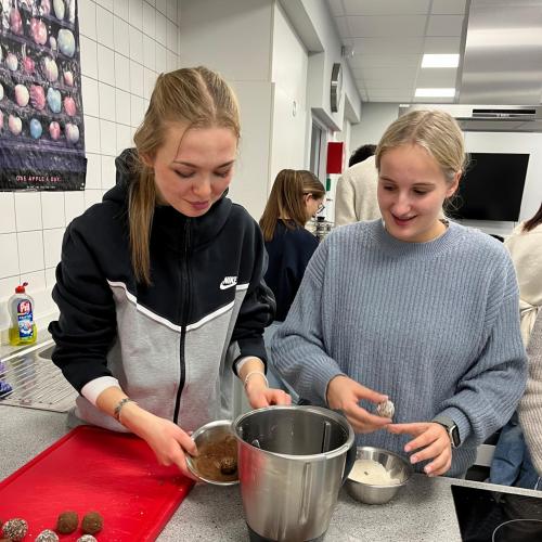 Aktuelle Ernährungstrends stehen auf dem Lehrplan der Jahrgangsstufe 1 im Fach Sondergebiete der Ernährungswissenschaften. Mit der Herstellung von Dubai Schokolade und Energy Balls haben die Schülerinnen und Schüler den Trend mitgenommen und sich dadurch den Unterricht versüßt.