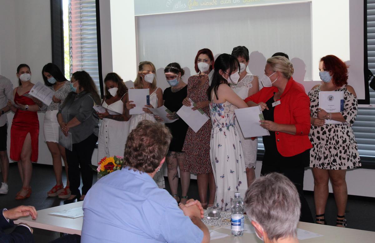 Die Absolventinnen und Absolventen der Berufsfachschulen für Altenpflege und Altenpflegehilfe erhalten ihre Abschlusszeugnisse