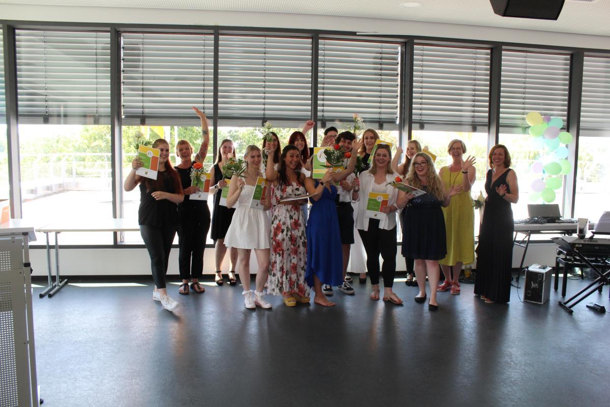 Die Absolventinnen und Absolventen der Berufsfachschule für Kinderpflege, der Fachschule für Sozialpädagogik und der Fachschule für Sozialpädagogik (praxisintegriert) freuen sich über ihre Abschlusszeugnisse