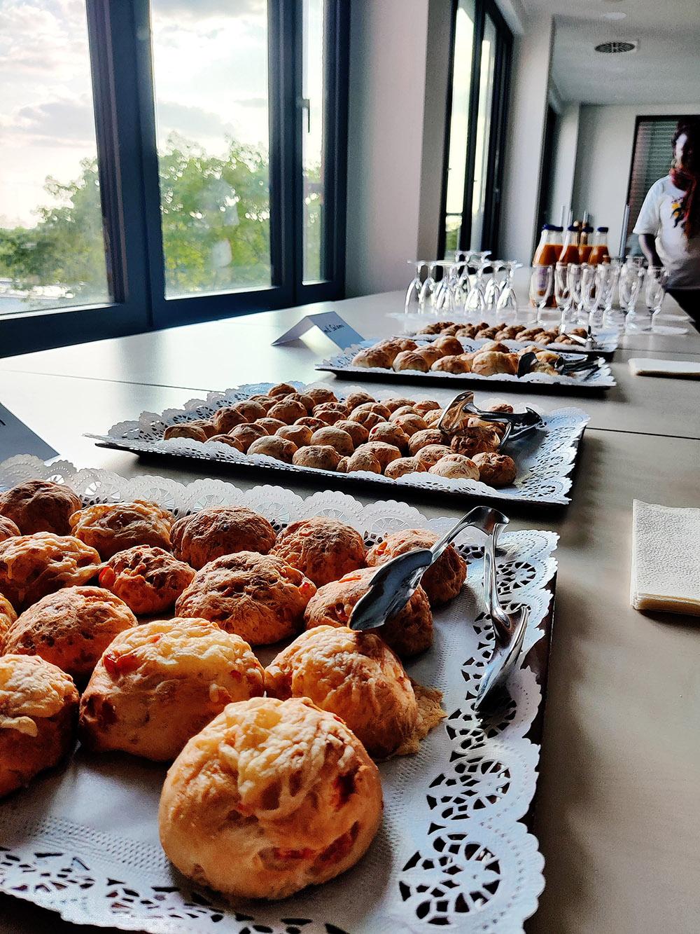 Beim anschließenden Hock ließen sich die Künstler:innen und das Auditorium das von den AV-Klassen zubereiteten Fingerfood schmecken und den Abend ausklingen.
