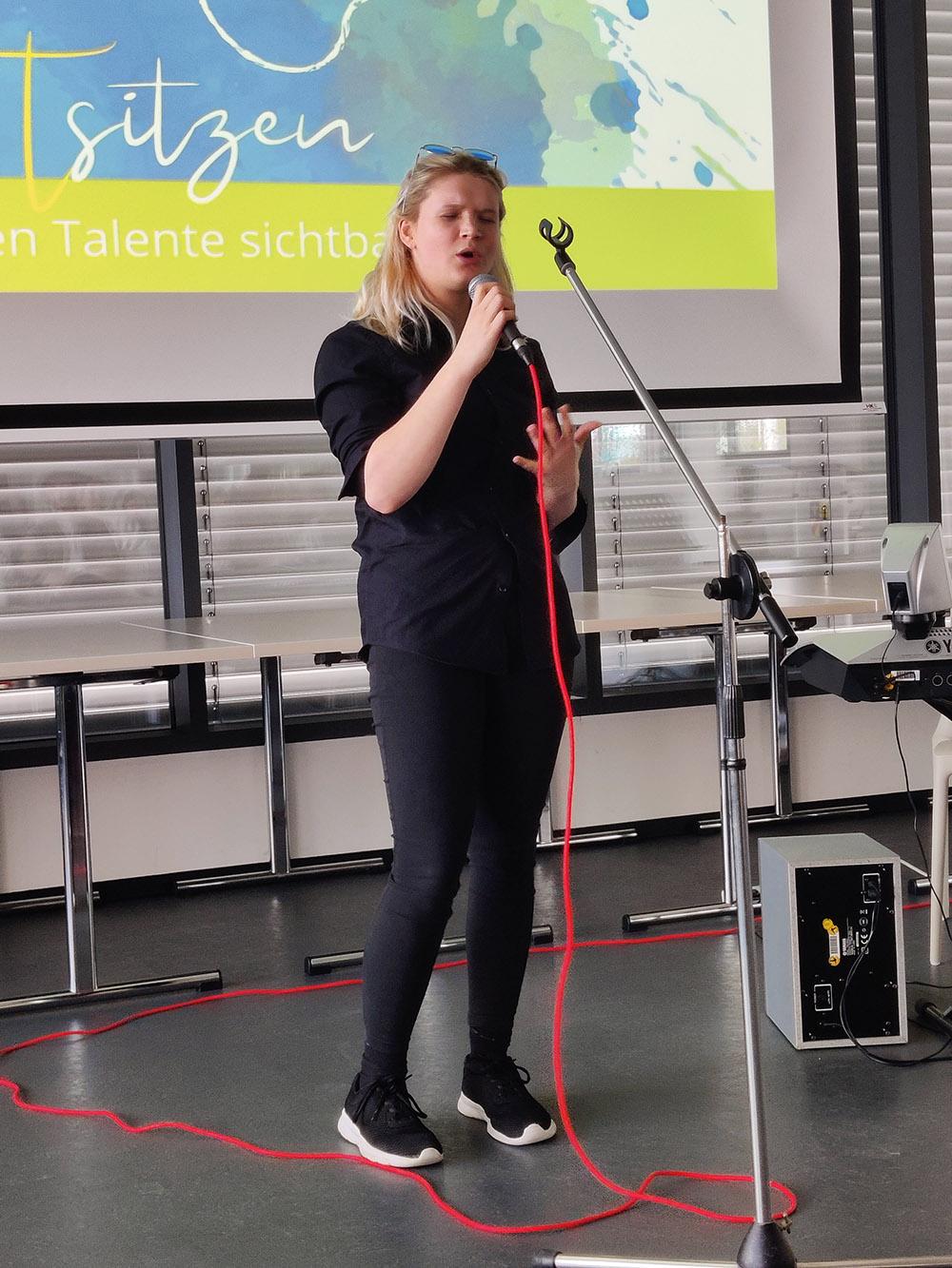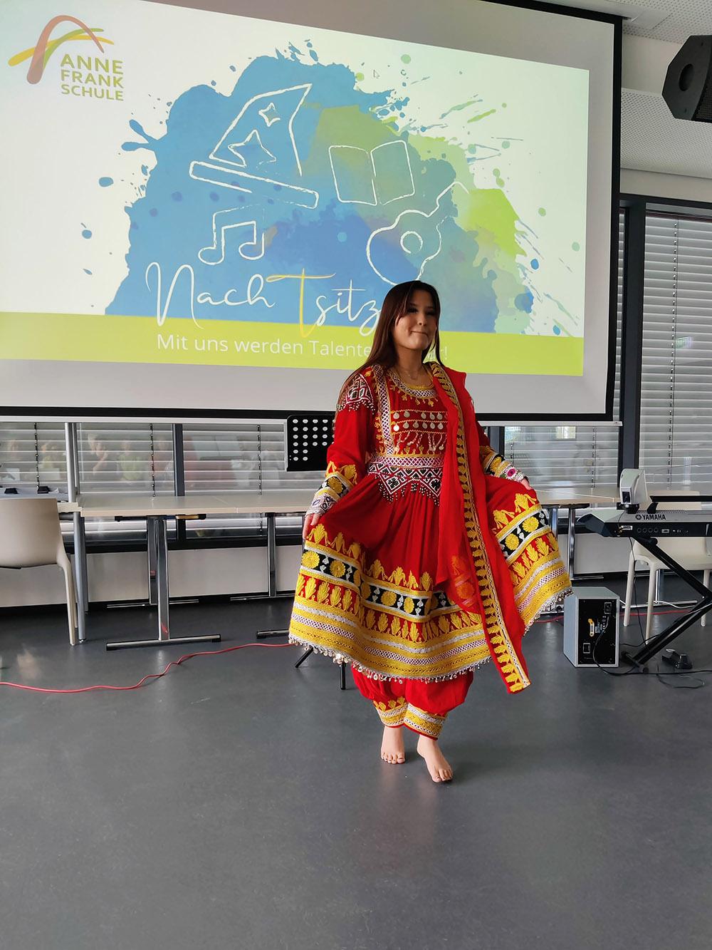 Mia Gerstner (AV P2) präsentierte zwei Musikstücke, die ihr sehr am Herzen lagen. Linda Mafany (2BFHAM2) sang ein bewegendes Lied von Hillsong, während Rayhane Mohammadi (2BFH2/1) einen afghanischen Tanz in traditionellem Gewand aufführte.