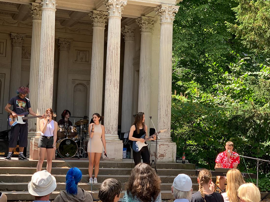 Schulband rockt Schlosspark in Schwetzingen: Keine 48 Stunden nach der diesjährigen Abifeier wird die AFS-Band bei der Veranstaltung „Klingendes Schwetzingen“, bei der Ensembles und Bands aus Schulen in ganz Ba-Wü auftreten durften, begeistert gefeiert.