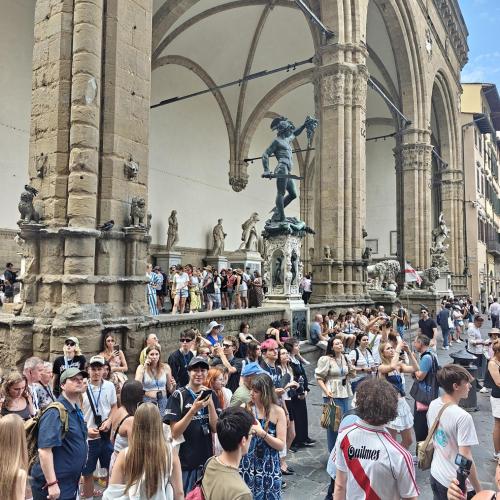 Am Donnerstag, dem 24. Juli, besuchten wir schließlich die Kunst- und Kulturstadt Florenz. Bei einem geführten Stadtrundgang lernten wir die bedeutendsten Sehenswürdigkeiten kennen, darunter natürlich auch den beeindruckenden Dom von Florenz. Auch hier blieb genug Zeit, um in kleinen Gruppen die Stadt individuell zu erkunden, sei es beim Stöbern in Boutiquen oder beim Genießen eines Gelatos in einem Café.