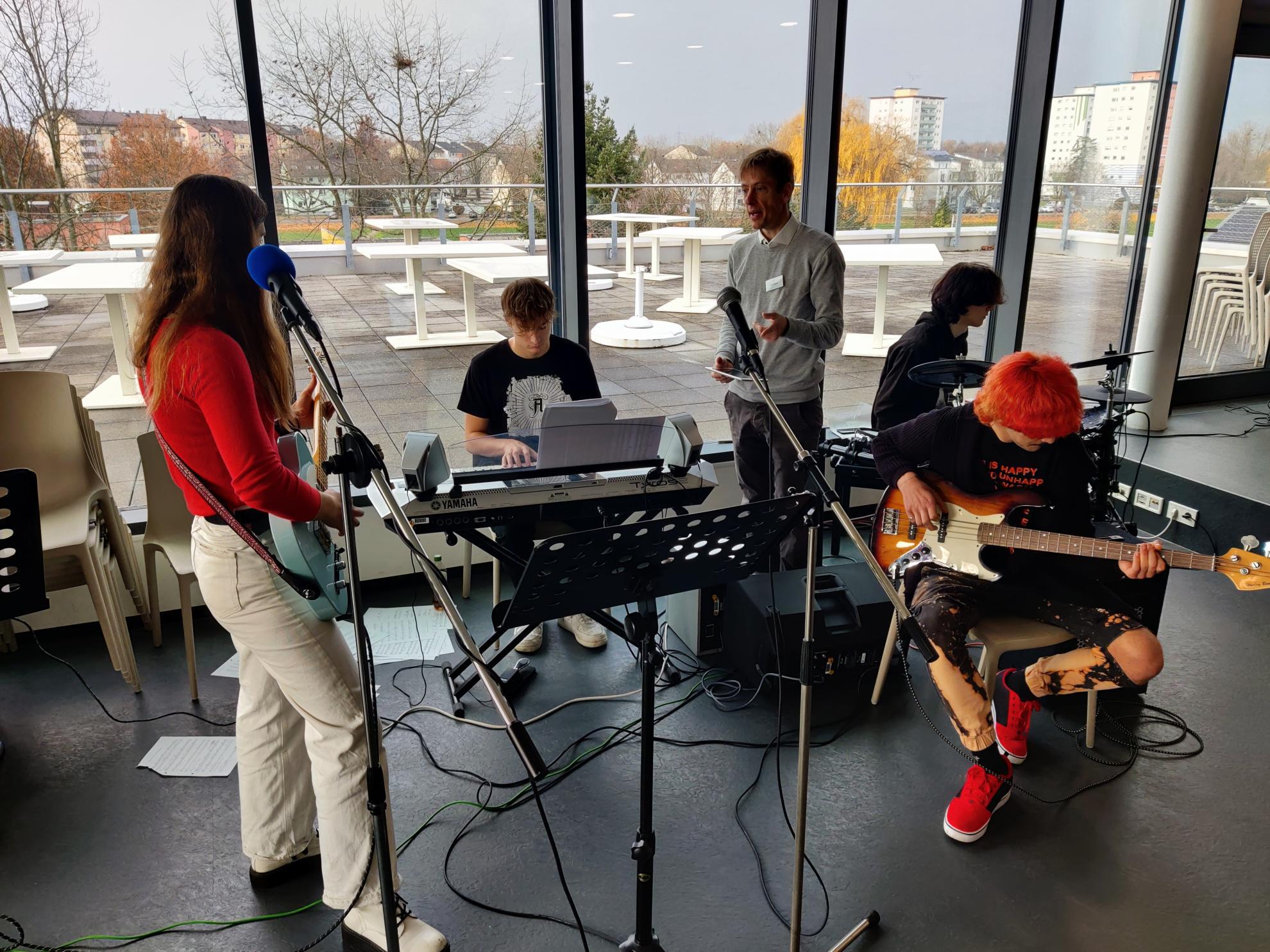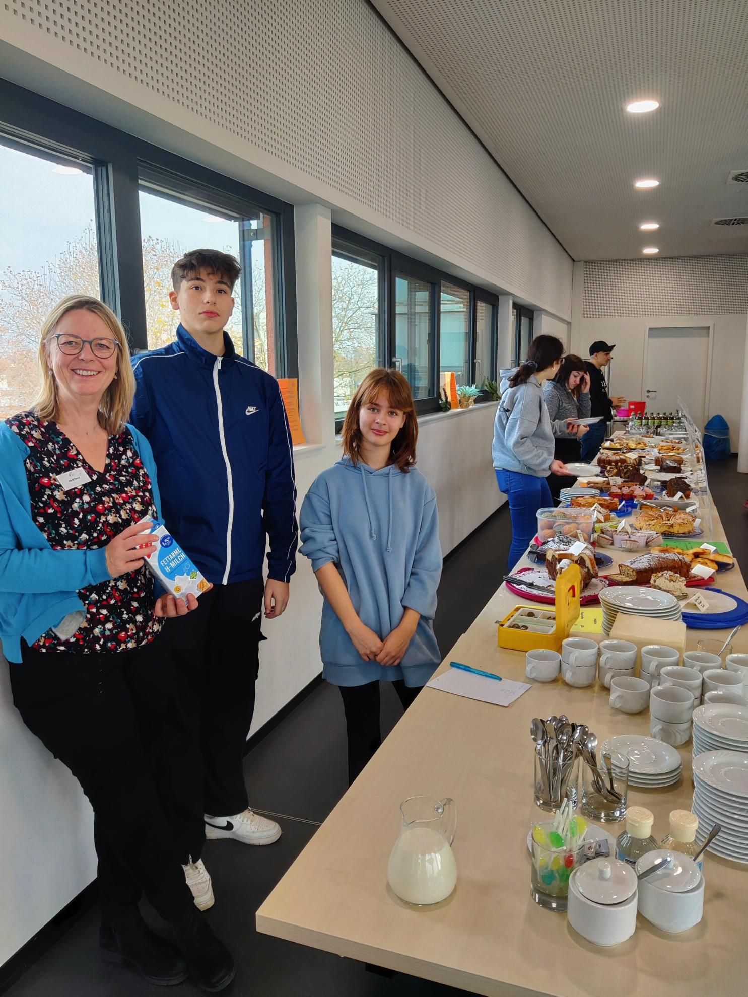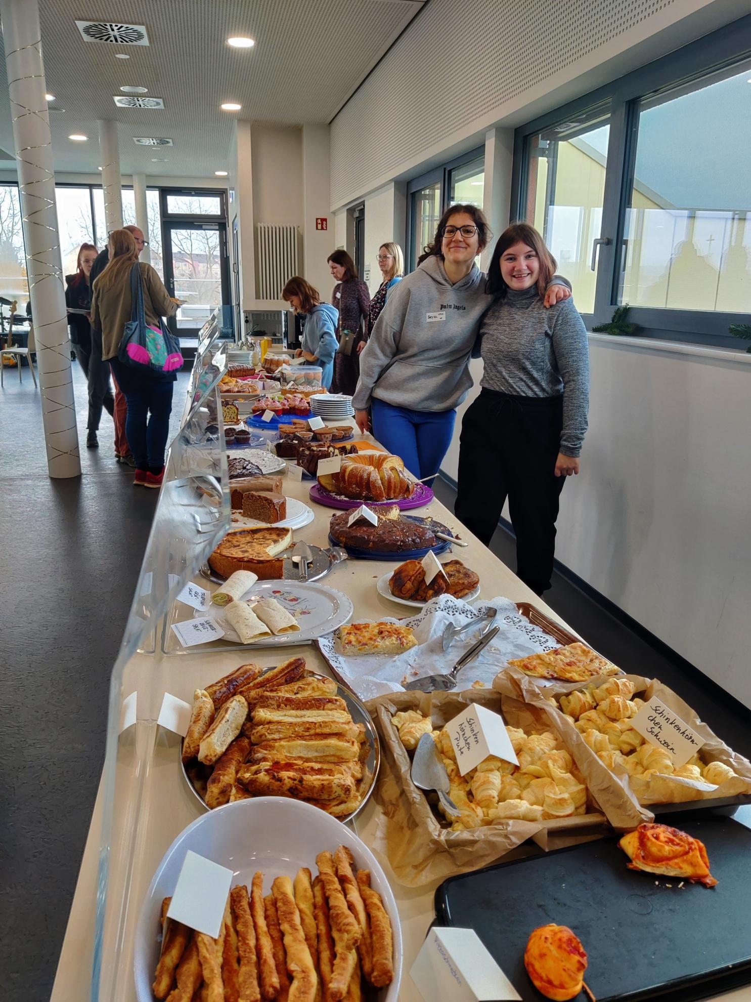 Bei musikalischer Unterhaltung konnten sich die Besucher:innen in der Mensa allerlei Leckereien schmecken lassen. Das SMV-Café war dank der Unterstützung vieler Schüler:innen und Eltern reich gefüllt mit deftigen und süßen Speisen aus aller Welt und die Schulband präsentierte zeitgenössische Hits sowie einige Klassiker, welche für großen Applaus sorgten.