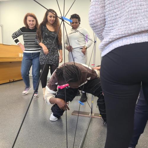 Was haben ein Klavierkonzert und ein Spinnennetz miteinander zu tun? Die Antwort auf diese Frage erfuhren die Schüler:innen der 2BFAHM1, also das erste Ausbildungsjahr der Altenpflegehilfe Migranten, auf ihrem Teamtag. In dieser Klasse treffen in diesem Schuljahr zwölf Nationalitäten zusammen – unter anderem kommen unsere Schüler:innen aus Mexiko, dem Iran, der Ukraine, Indien oder Togo.