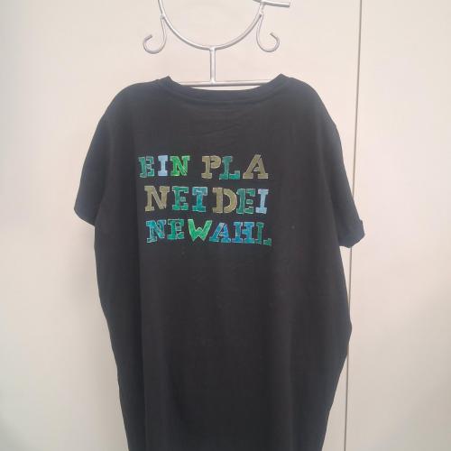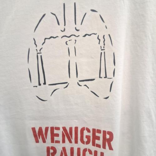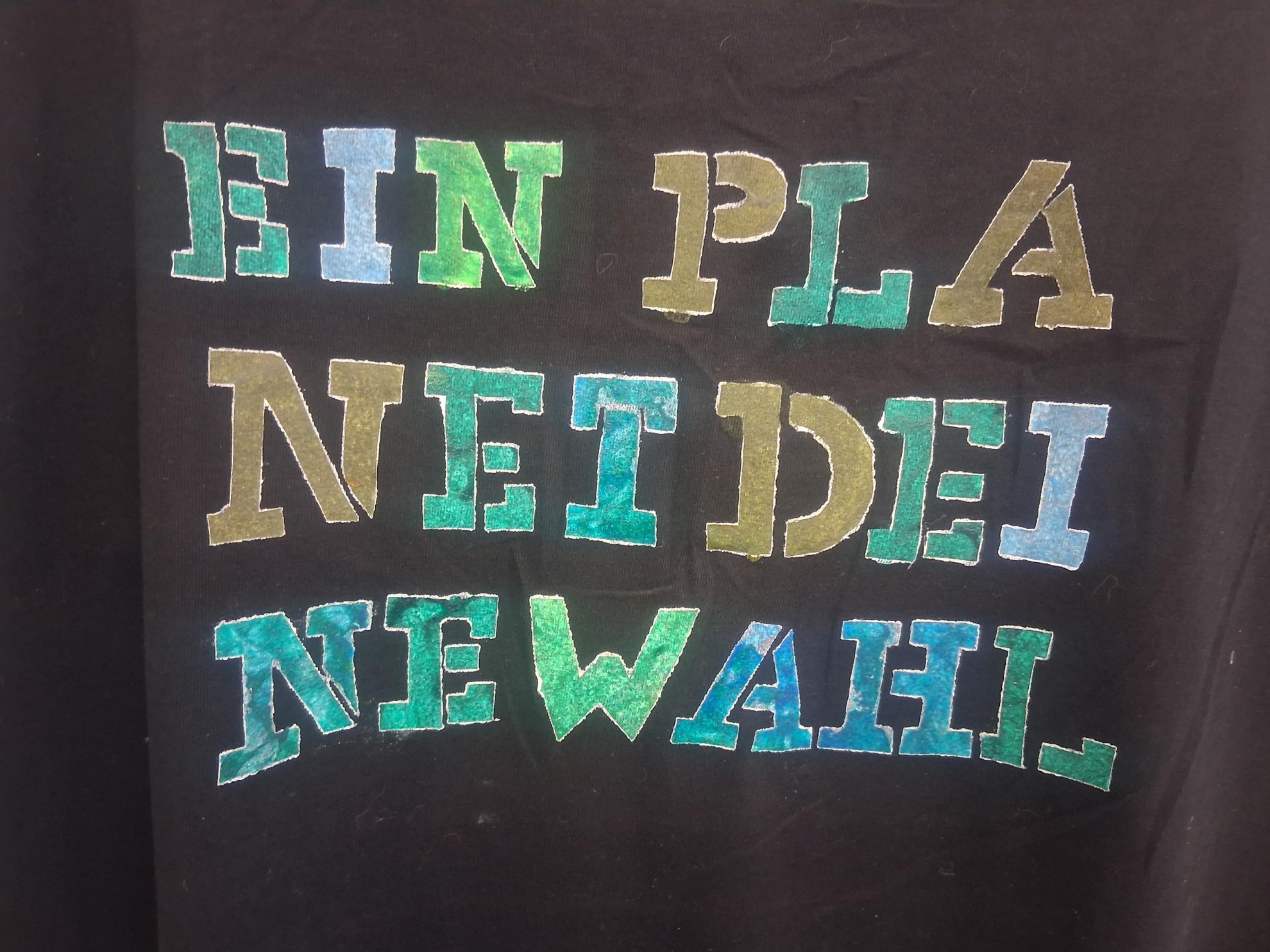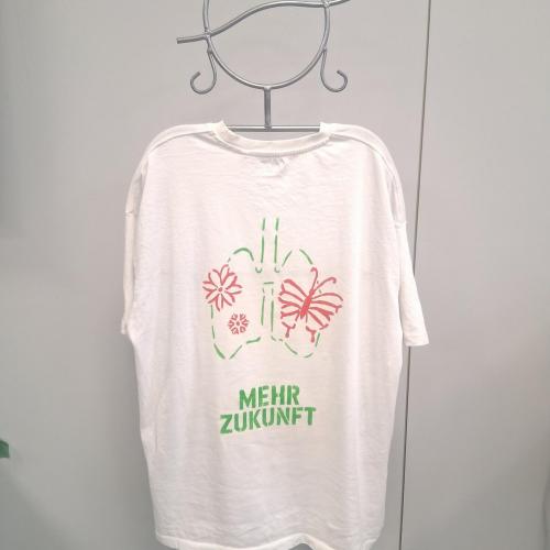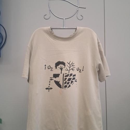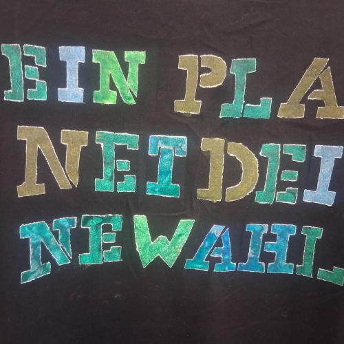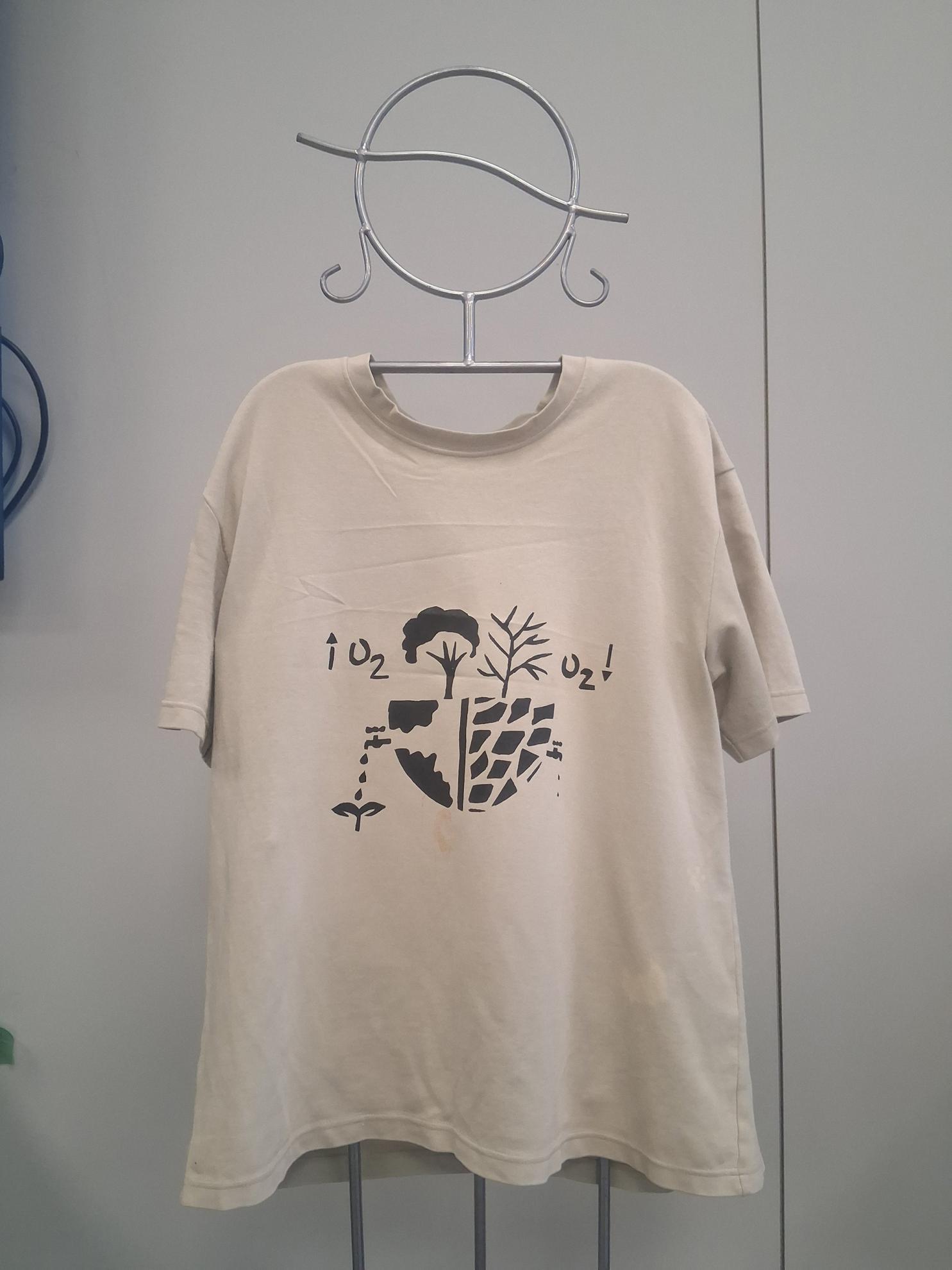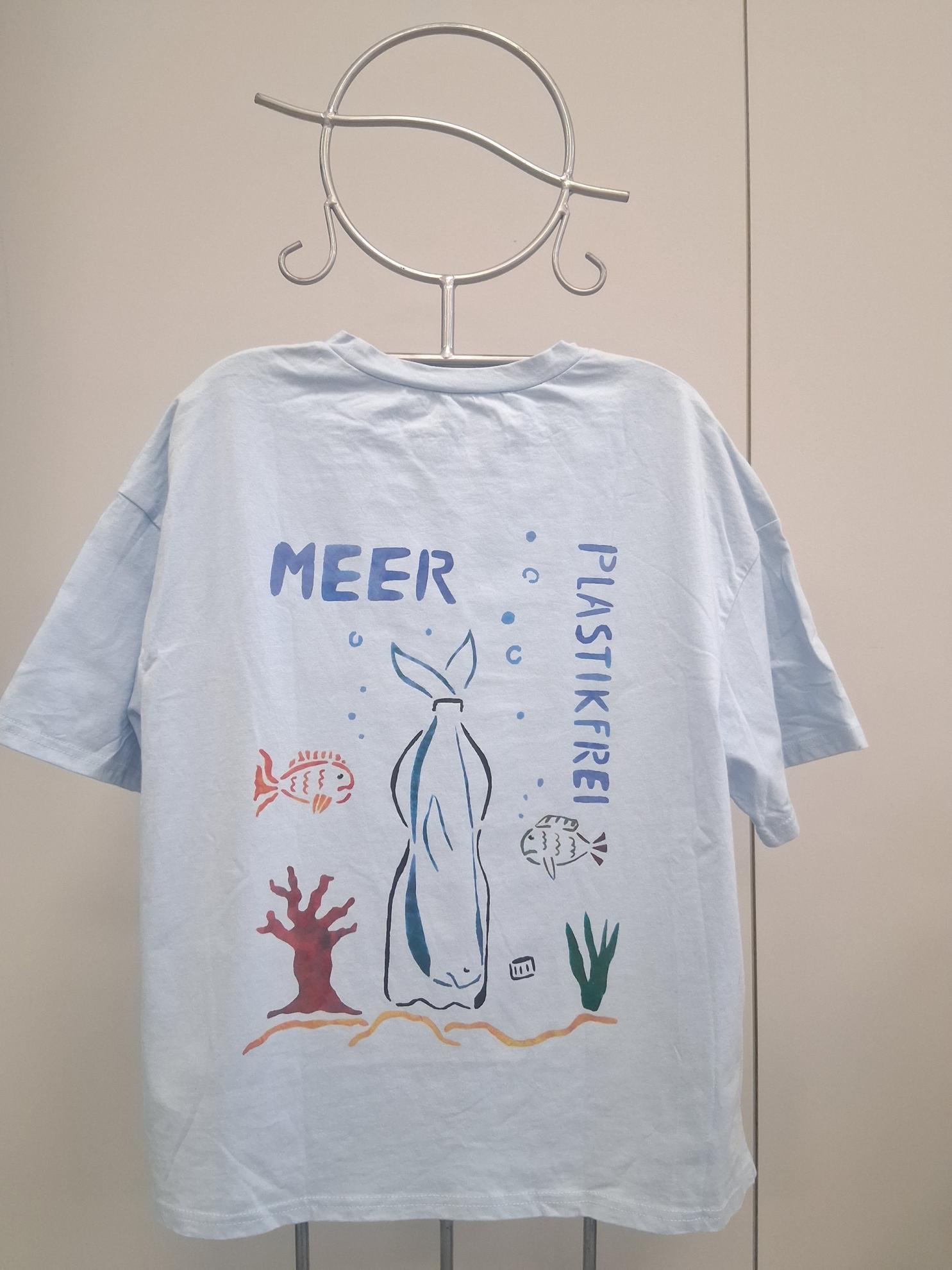 Im Wahlpflichtfach beschäftigten sich die Auszubildenden mit dem Thema Ökologie und Nachhaltigkeit als Bildungsziele. Es sollte ein textiler Gegenstand mit einem selbst entworfenen Stencildruck gestaltet werden, der Bild und Text enthält und zum Nachdenken anregt.