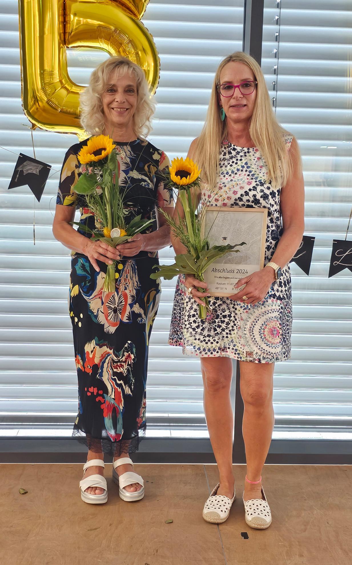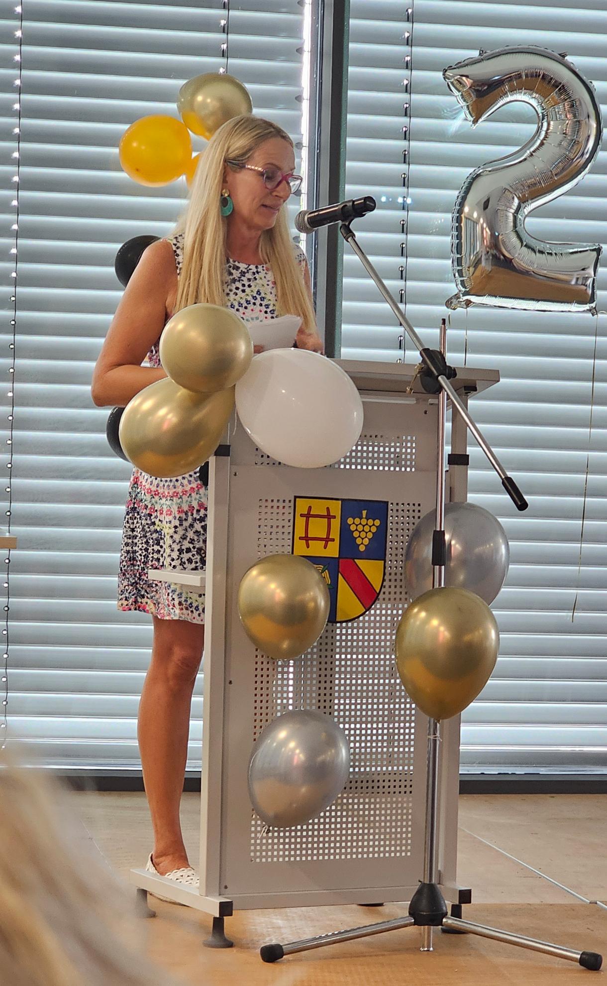 Nach einem weiteren Musikstück von Zülal, dieses Mal an der Gitarre, richteten auch die Klassenlehrerinnen Brigitte Matt und Nicole Merkel noch ein paar Worte an ihre Schützlinge und gaben dann die Zeugnisse sowie Briefe aus, in welchen die Schüler:innen zu Beginn des Schuljahres Ziele und Wünsche formuliert hatten.