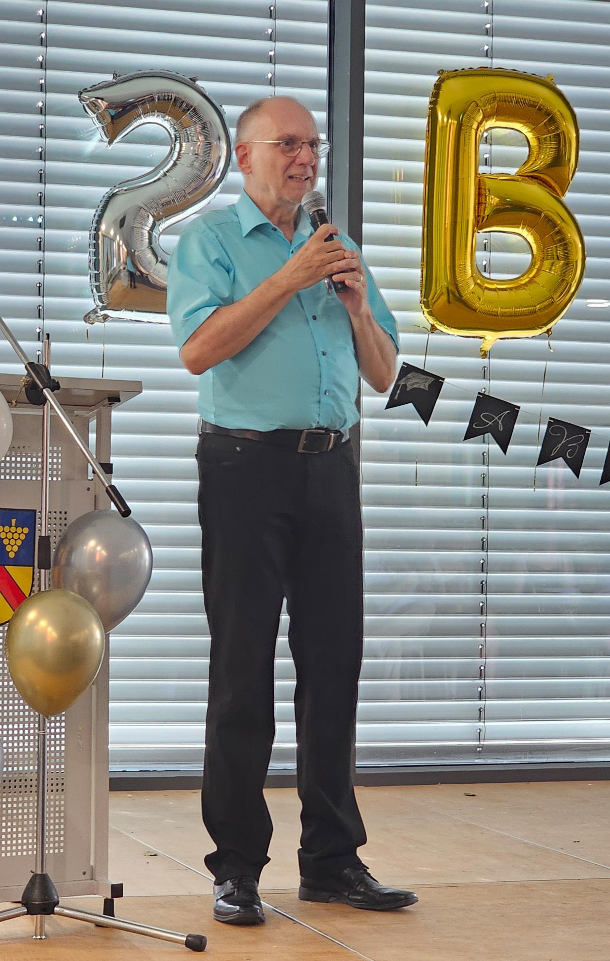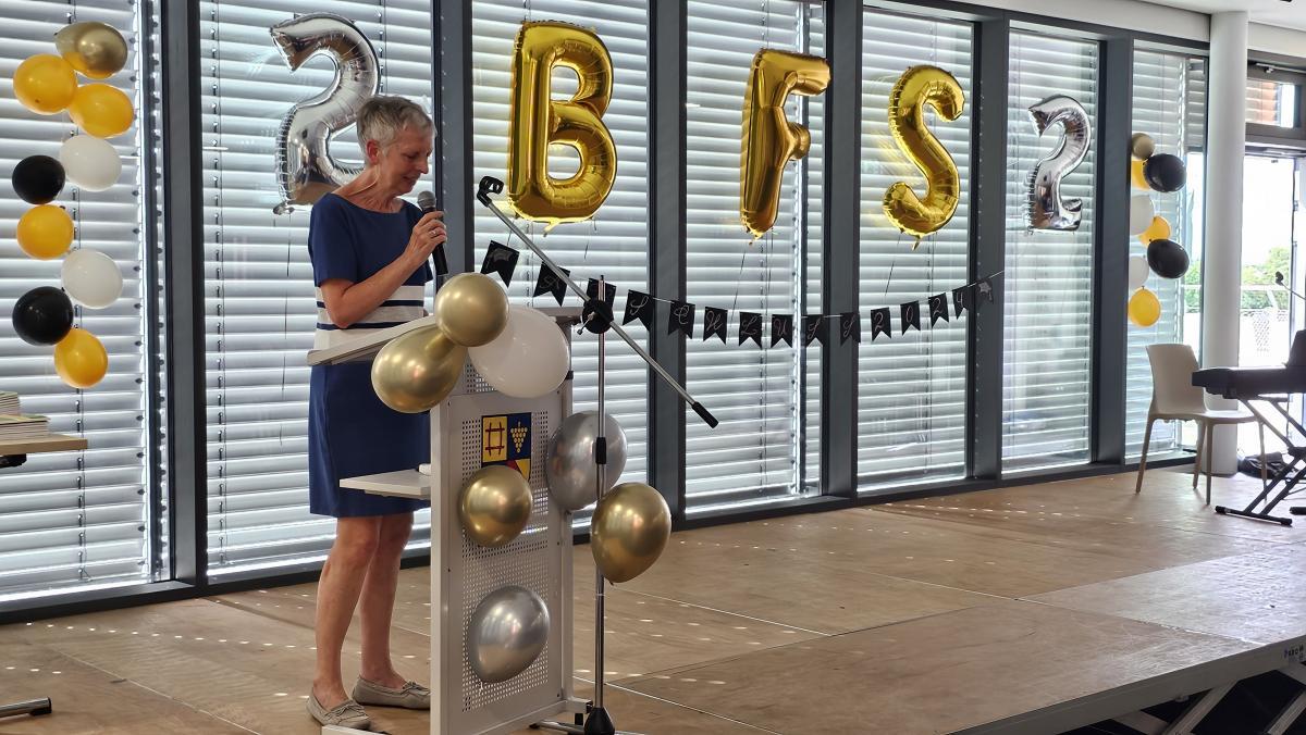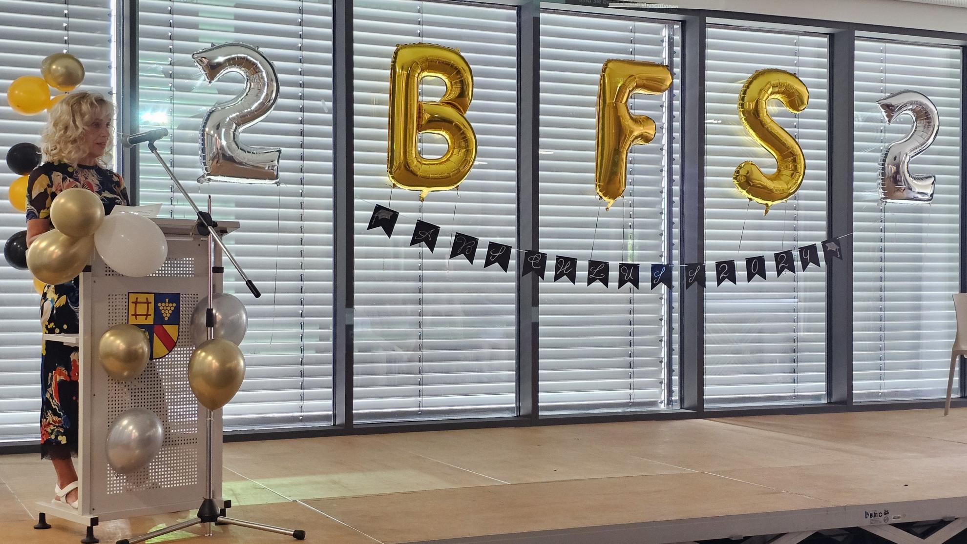 Schulleiterin Gabriele Reeb verwies in ihren Begrüßungsworten auf das Motto der Einladung zur Abschlussfeier der 2BFS: „Wir sind am Ziel und unsere Lehrer sind am Ende.“, welches sicherlich gut zu der intensiven Zeit passe, die die Absolvent:innen die letzten Wochen und Monate erlebt hätten. Mit guten Wünschen für die Zukunft verabschiedete sich Frau Reeb und bedankte sich noch bei Herrn Kühlmann und Frau Merkel für die Organisation der Prüfungen.