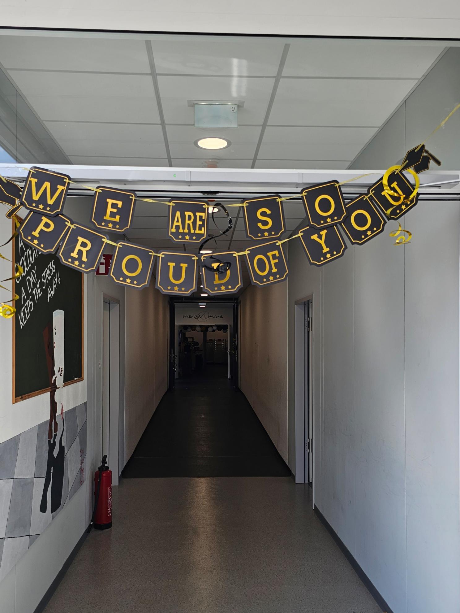 Neben ihren Zeugnissen erhielten die Absolvent:innen von ihren Klassenlehrerinnen das traditionelle Survival-Päckchen: Eine Zusammenstellung wichtiger Utensilien für ihren weiteren Lebensweg, wie ein (Glücks-)Cent, eine Duftkerze – falls ihnen mal etwas stinken sollte –, ein (Trost-)Pflaster, ein Cocktailschirmchen für stürmische Zeiten oder Schokolade – um ihnen den Abschied zu versüßen.