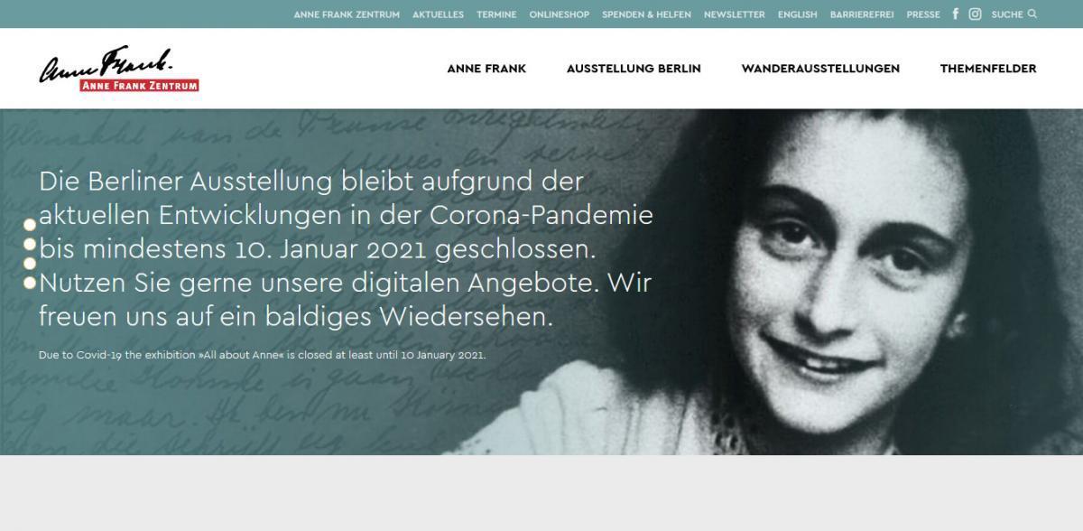 Das Anne Frank Zentrum in Berlin betreut eine ständige Ausstellung in Berlin und Wanderausstellungen zu Anne Frank in der ganzen Bundesrepubklik. Außerdem ist das Zentrum mit vielen sonstigen pädagogischen Angeboten aktiv.